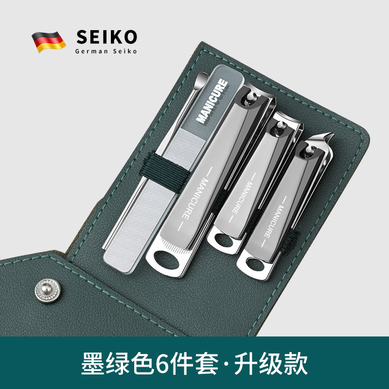 • 다크 그린 회전 가죽 케이스 실버 메탈 손톱깎이 5종 세트
