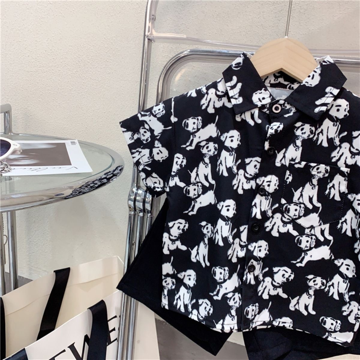어린이 한국식 반팔 셔츠 세트 2024 새로운 통기성 소년 꽃 셔츠 반바지 투피스 세트 아기 트렌디