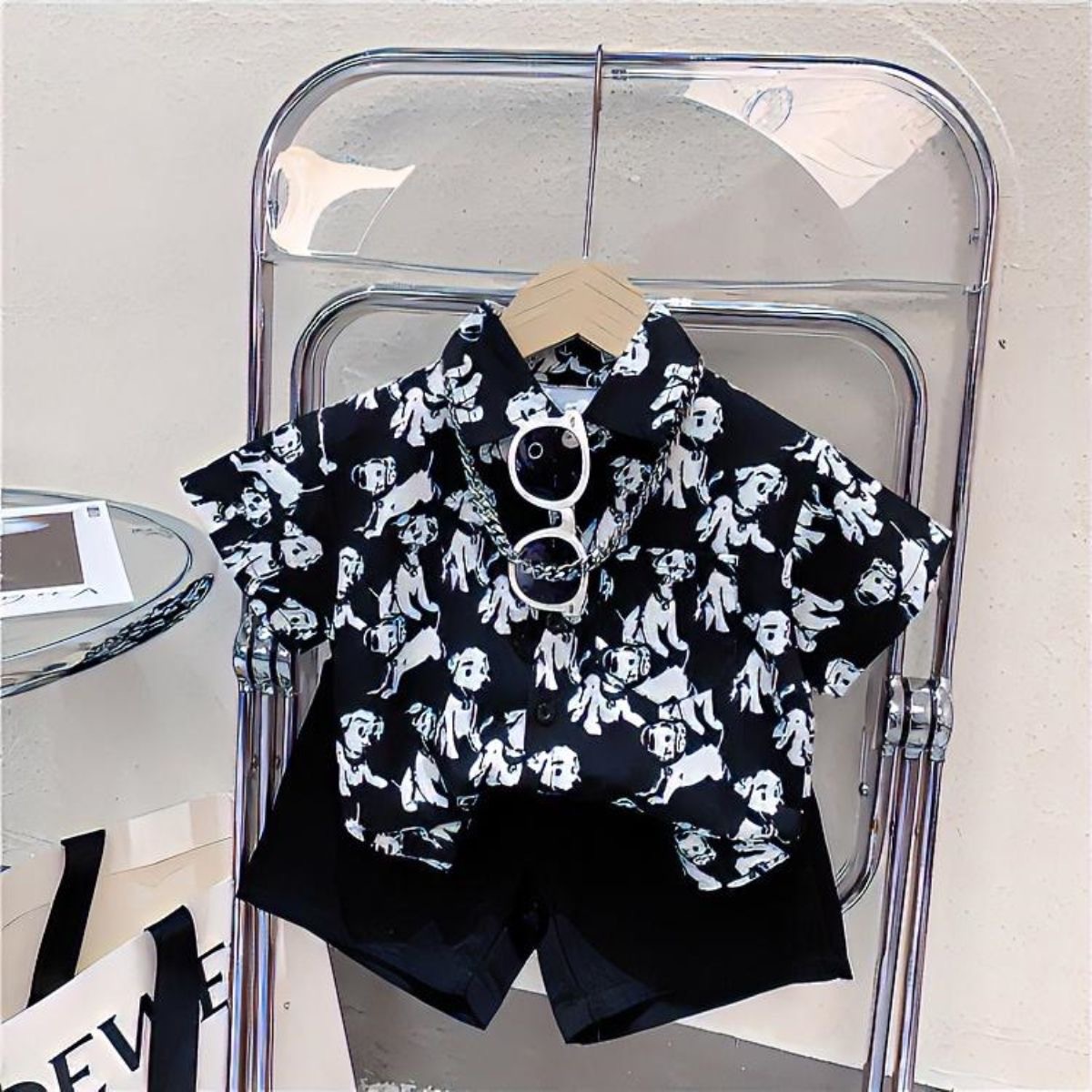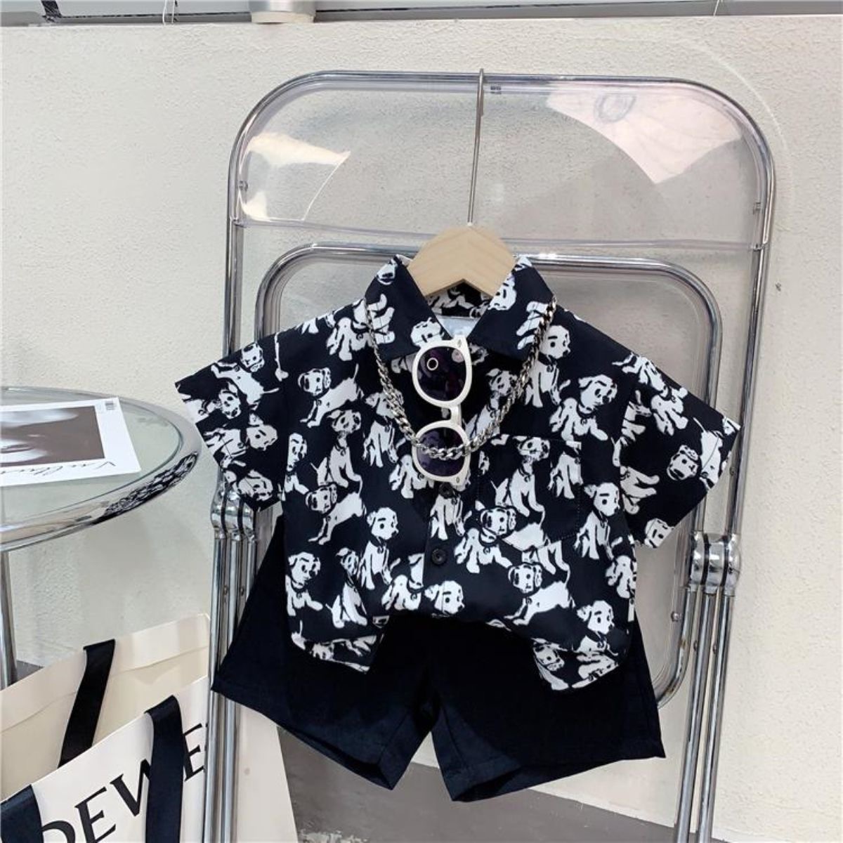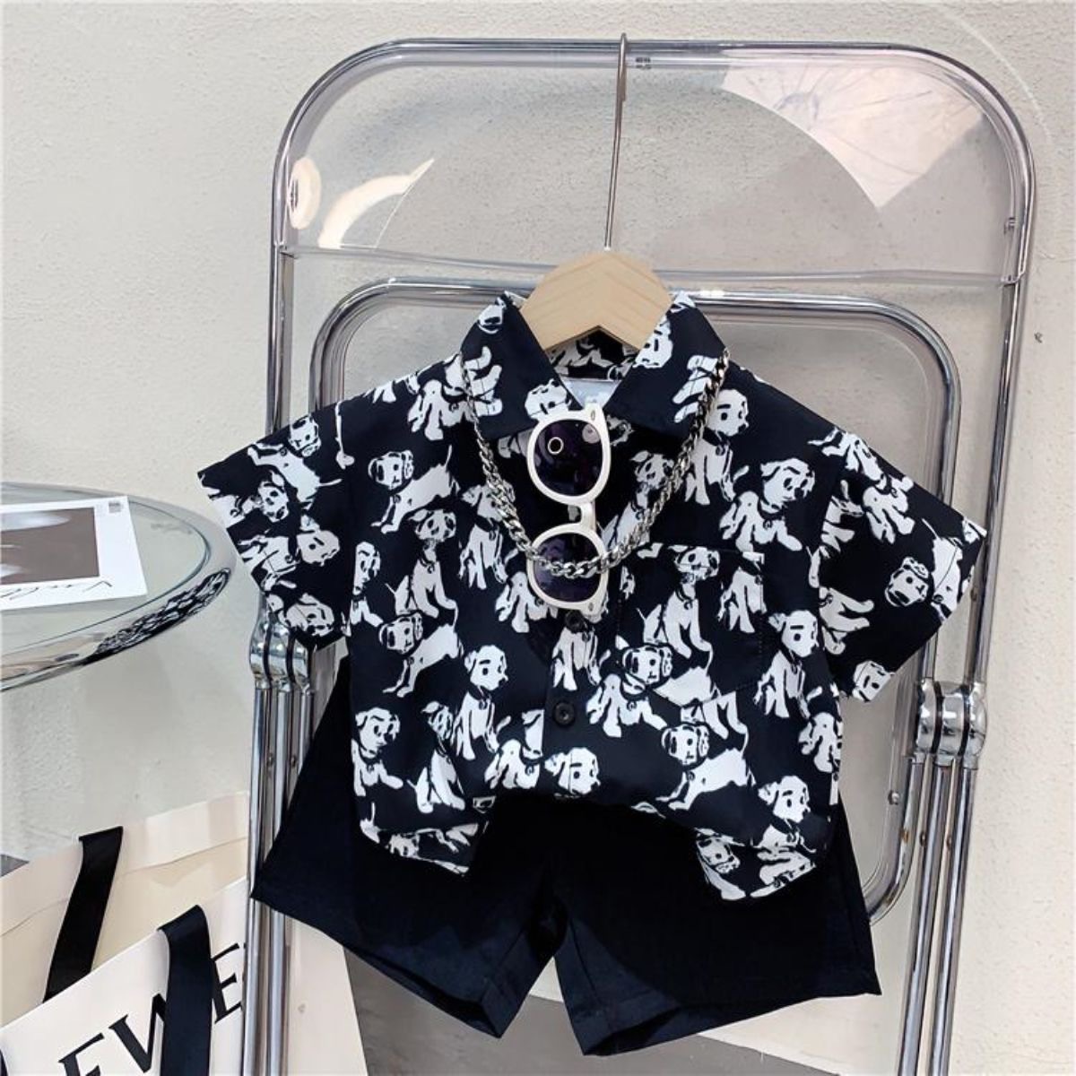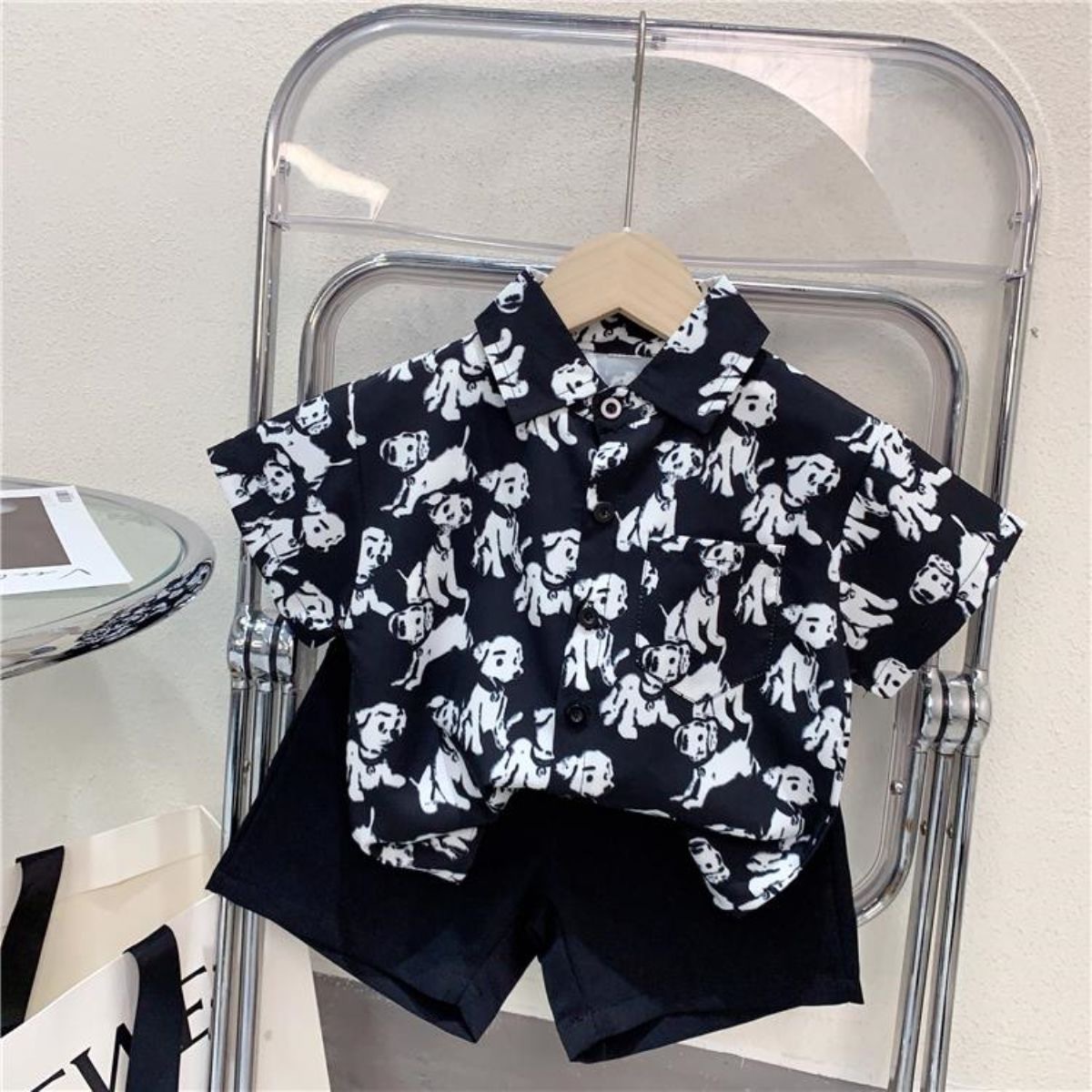 어린이 한국식 반팔 셔츠 세트 2024 새로운 통기성 소년 꽃 셔츠 반바지 투피스 세트 아기 트렌디스토어 가기