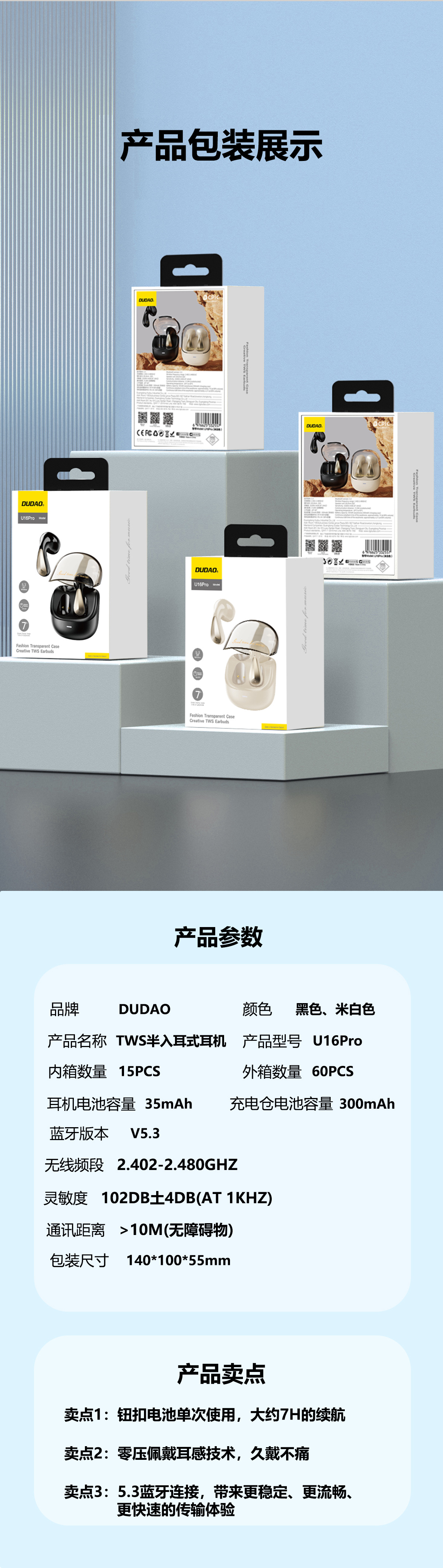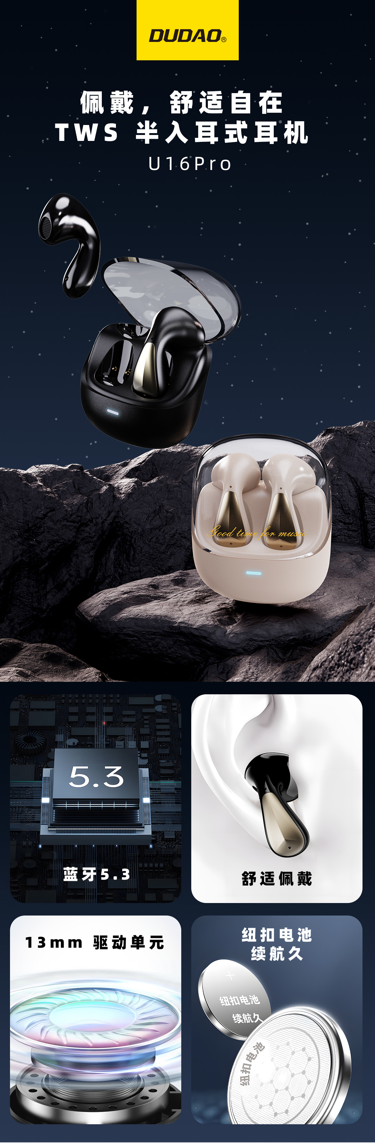 U16Pro TWS半入耳式蓝牙耳机 网络限价:109