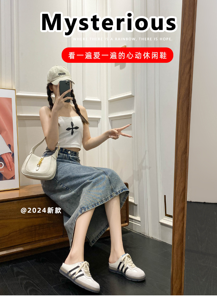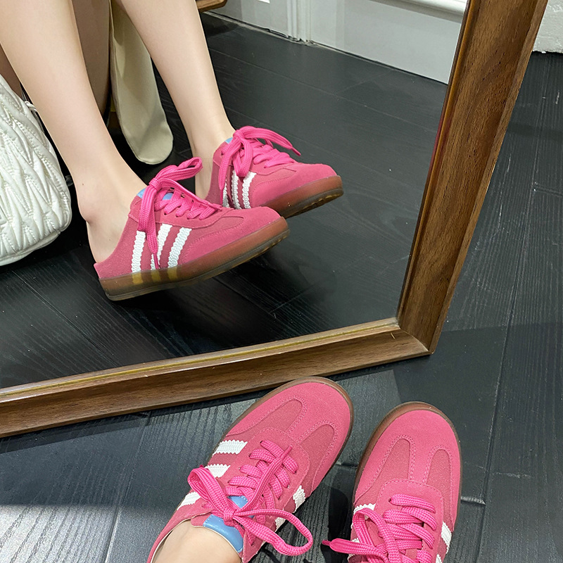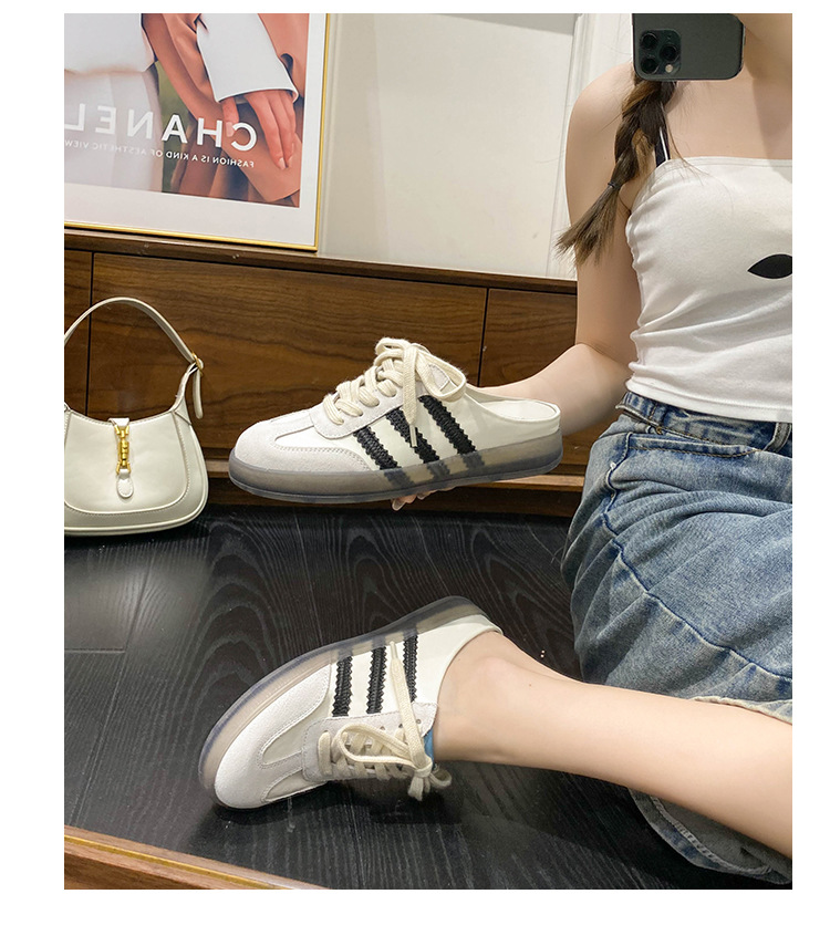 투명 플랫 스니커즈 여성의 다채로운 독일 트레이닝 신발 2024 여름 올매치 정품 가죽 캐주얼 대형 41-43 슬리퍼스토어 가기