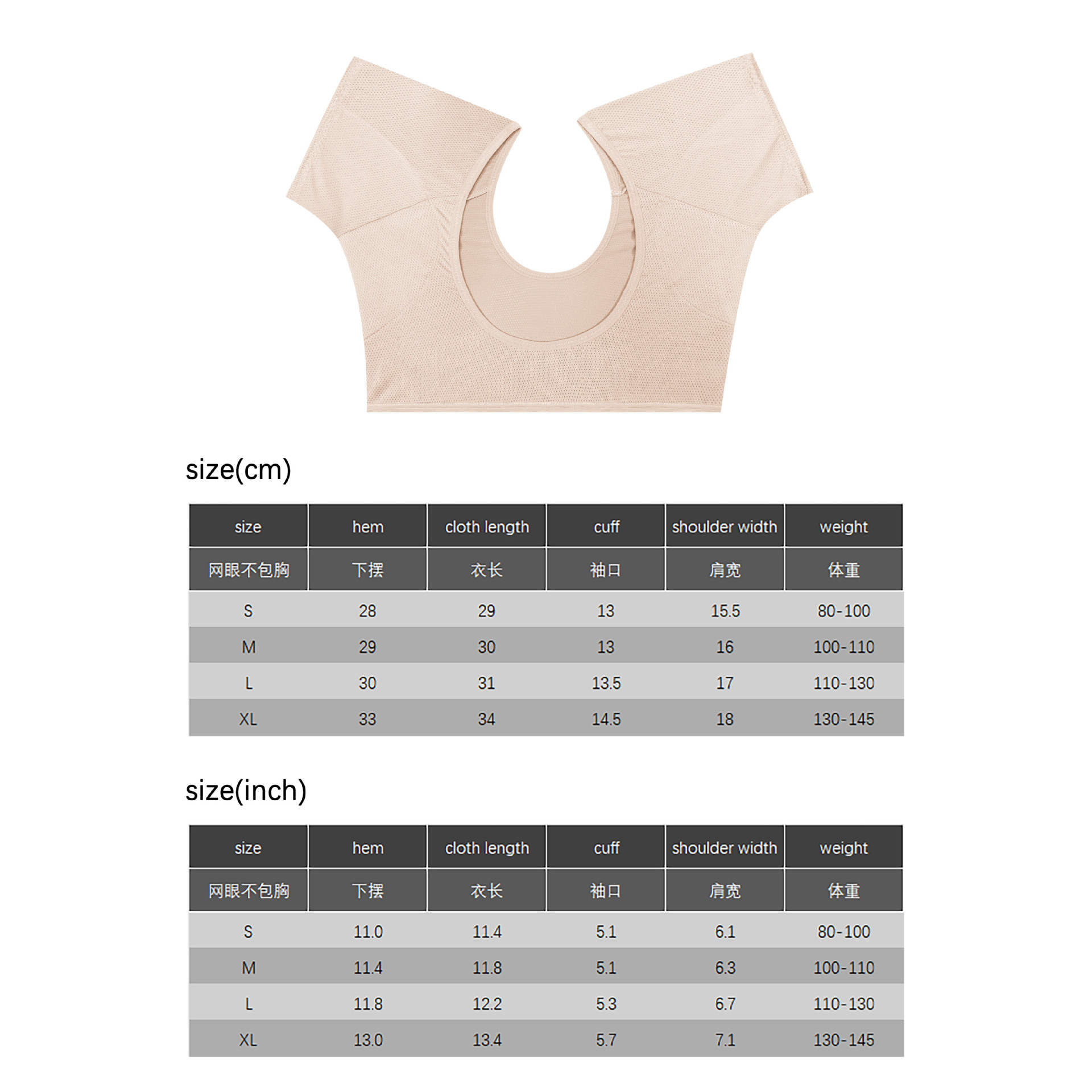 재고 있음, 해외배송 가능, 겨드랑이 땀흡수 패드, 메쉬 소재, 속건성, 반팔, 통기성, 땀흡수, 땀얼룩 방지, 밀크 실크 및 메쉬 소재스토어 가기
