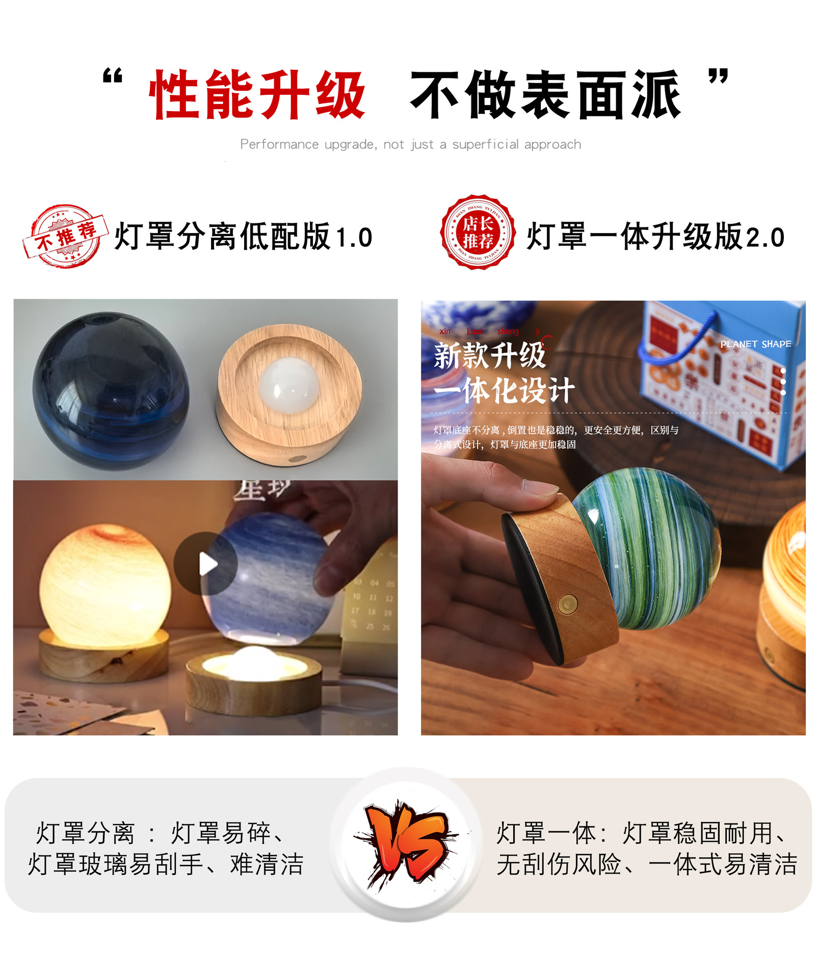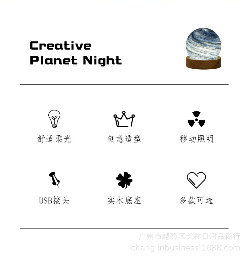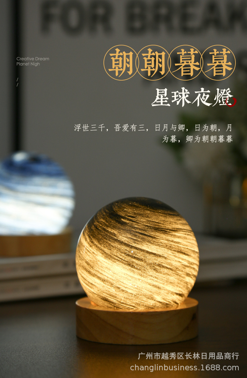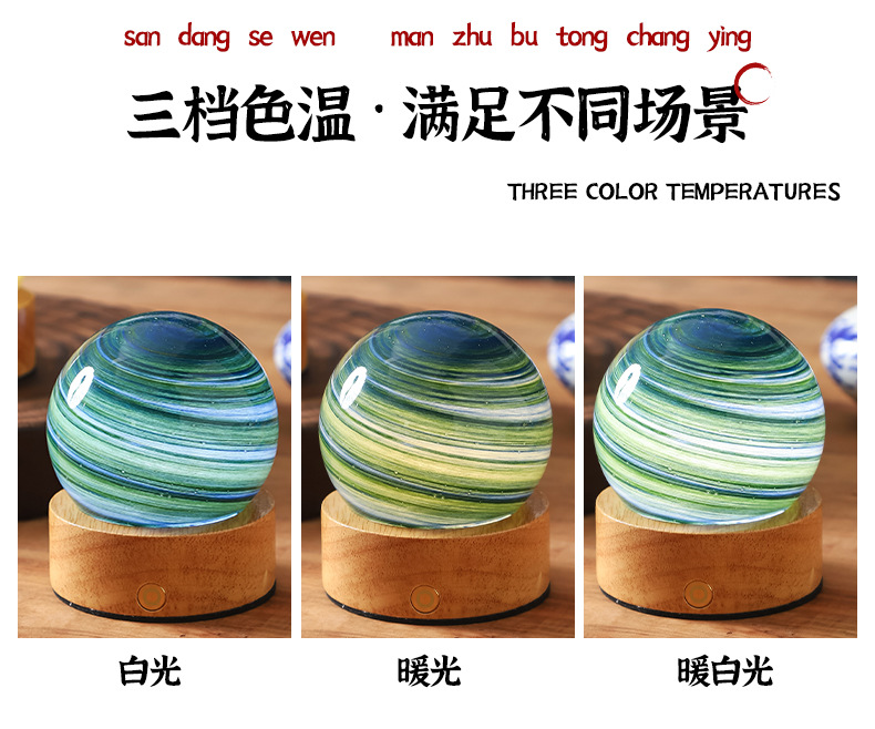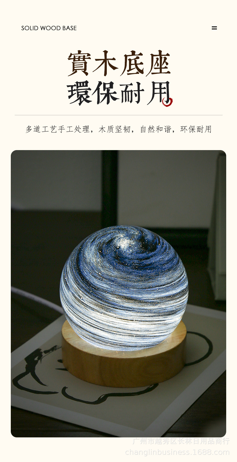 크로스보더 플래닛 램프 쉐이드 일체형 별빛 램프 원목 받침대 타입-C 충전 야간등 오로라 유리 조명 선물