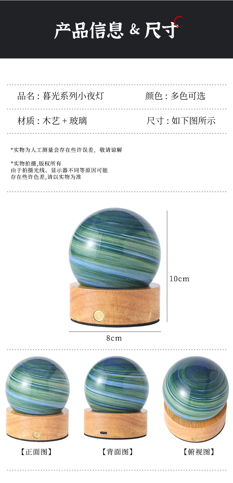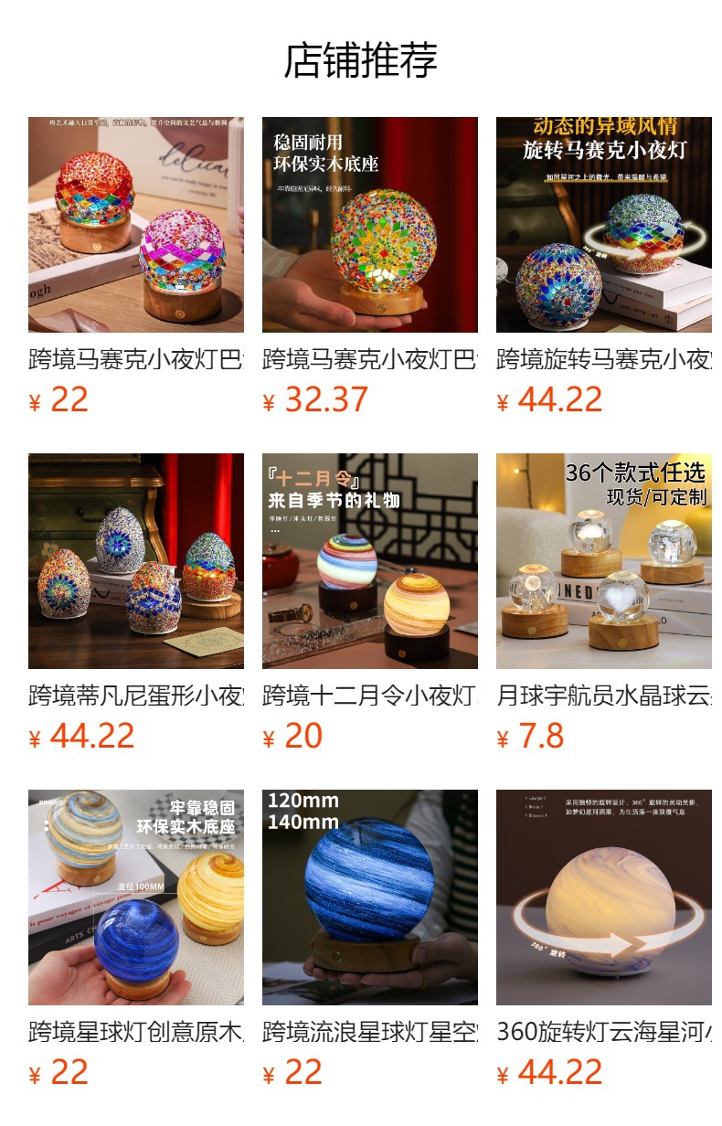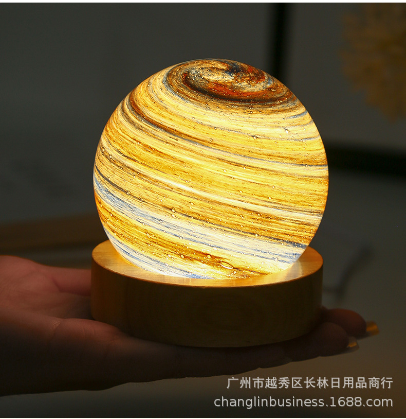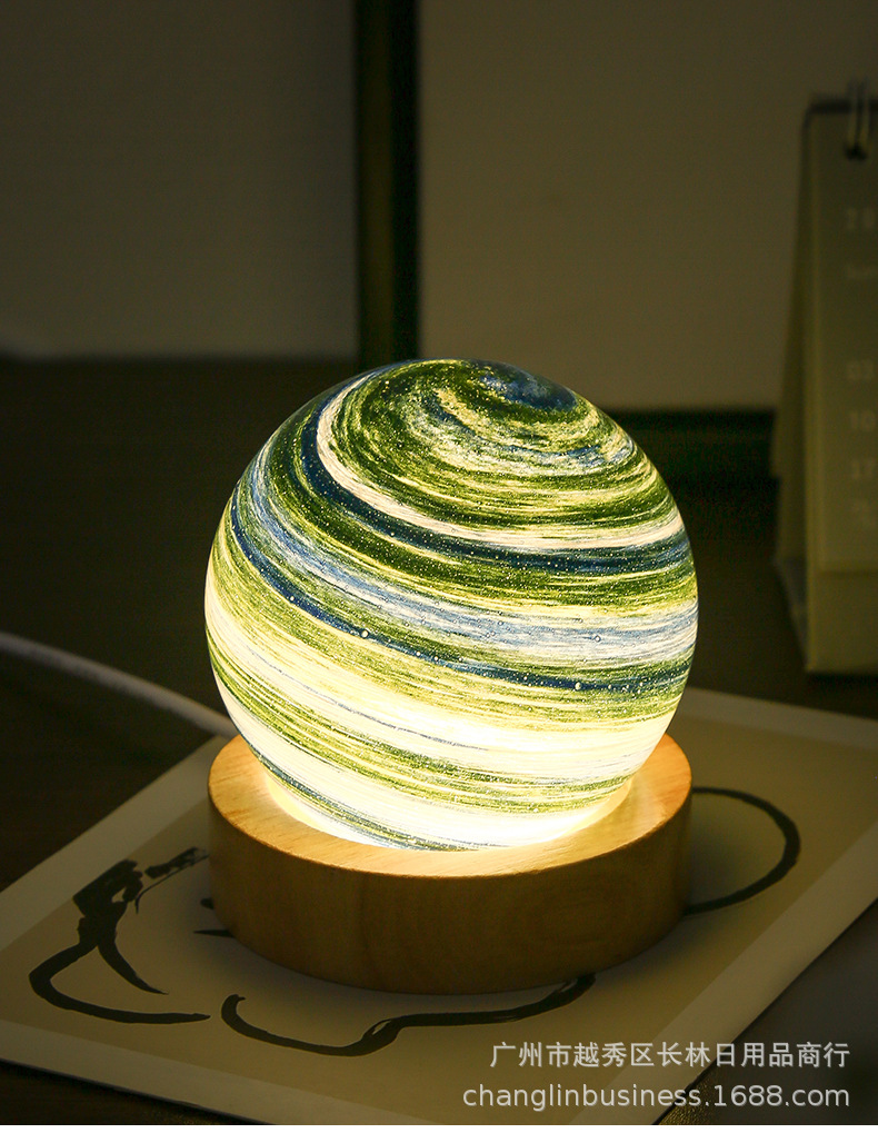 크로스보더 플래닛 램프 쉐이드 일체형 별빛 램프 원목 받침대 타입-C 충전 야간등 오로라 유리 조명 선물스토어 가기