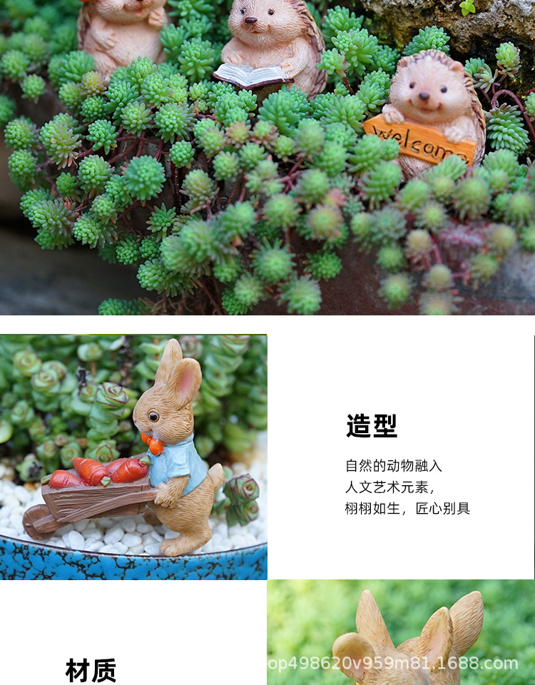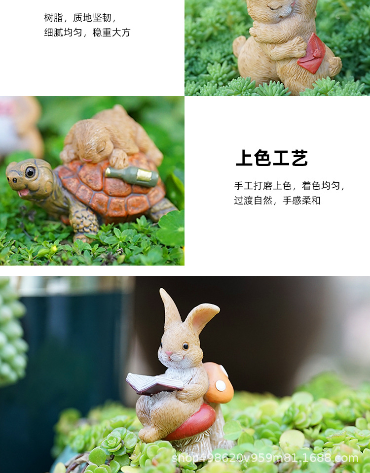 다이파 신제품 목가적 토끼 귀여운 동물 다육 꽃 냄비 장식 수지 공예 발코니 화분스토어 가기