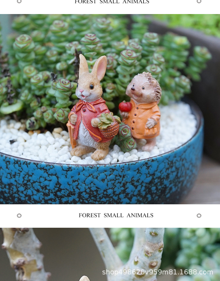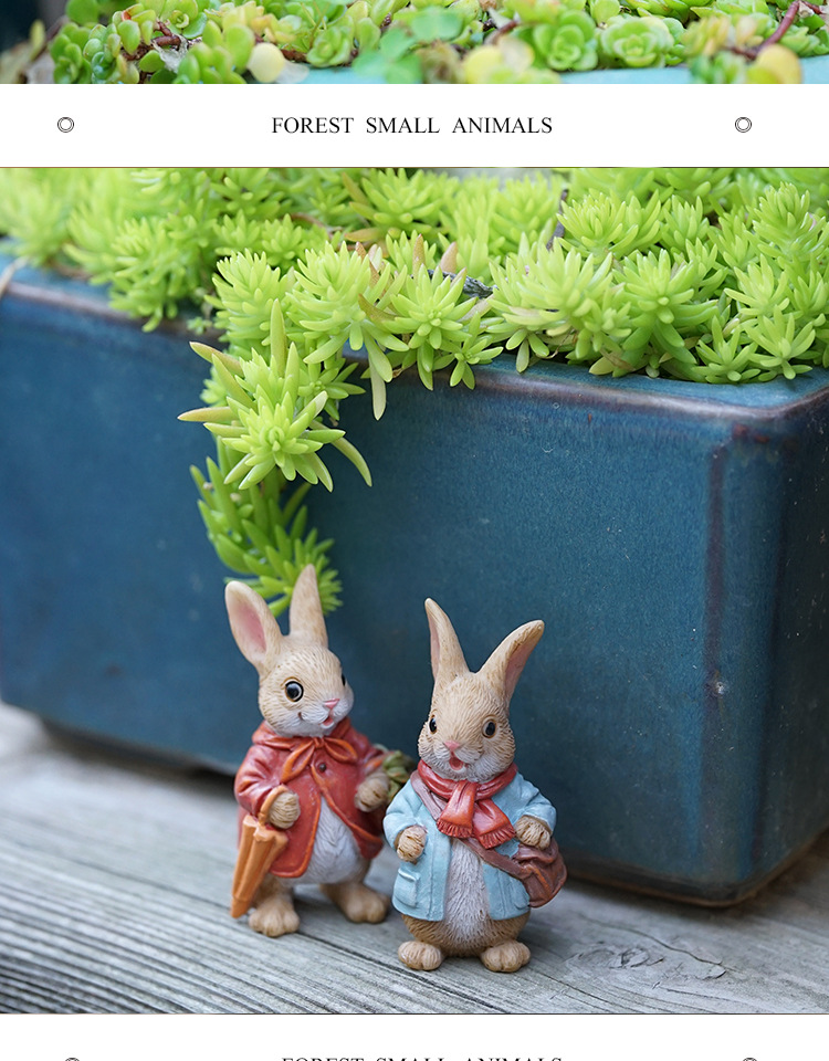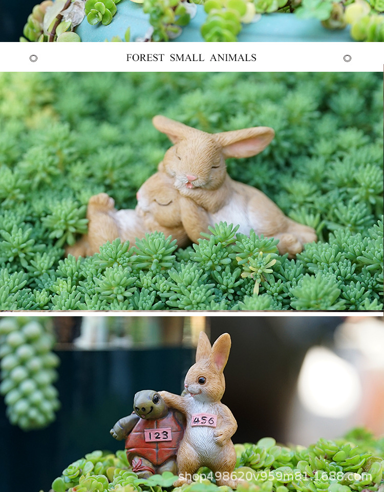 다이파 신제품 목가적 토끼 귀여운 동물 다육 꽃 냄비 장식 수지 공예 발코니 화분
