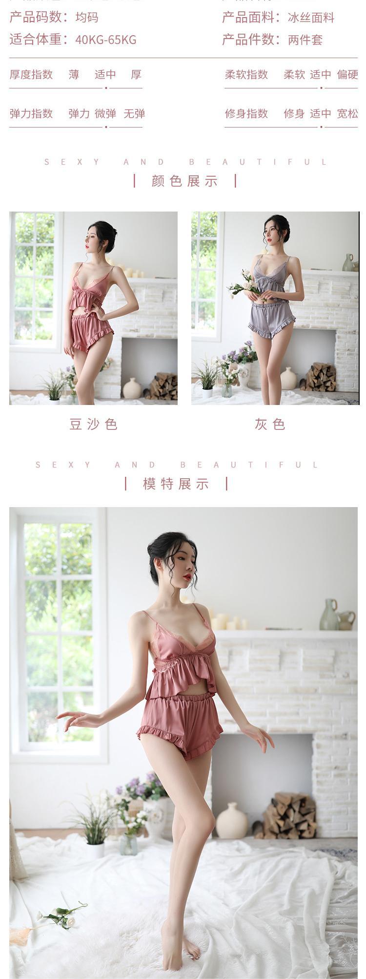 섹시한 속옷 프랑스 스타일 아이스 실크 분할 투피스 슬링 섹시 할로우 부드럽고 편안한 홈 잠옷 세트