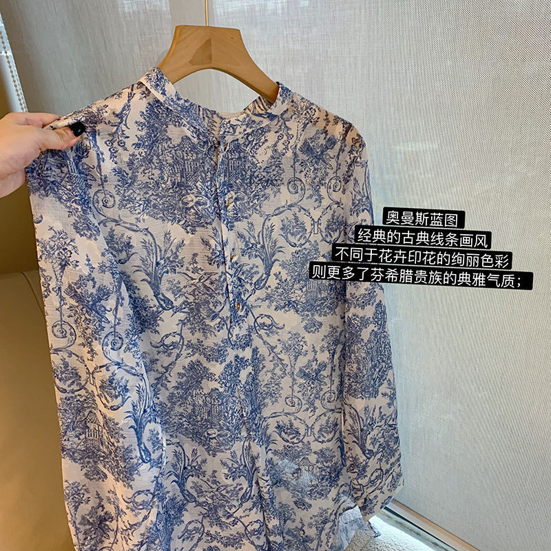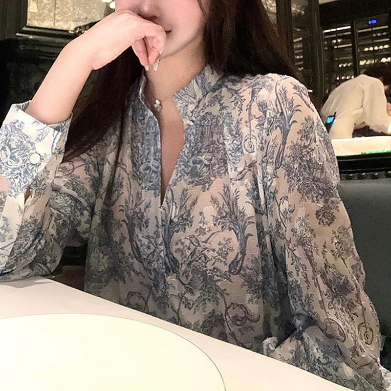 레트로 신중국풍 수묵화 프린트 브이넥 쉬폰 탑 여성용 여름 2026 신상 독특하고 세련된 얇은 자외선 차단 셔츠스토어 가기
