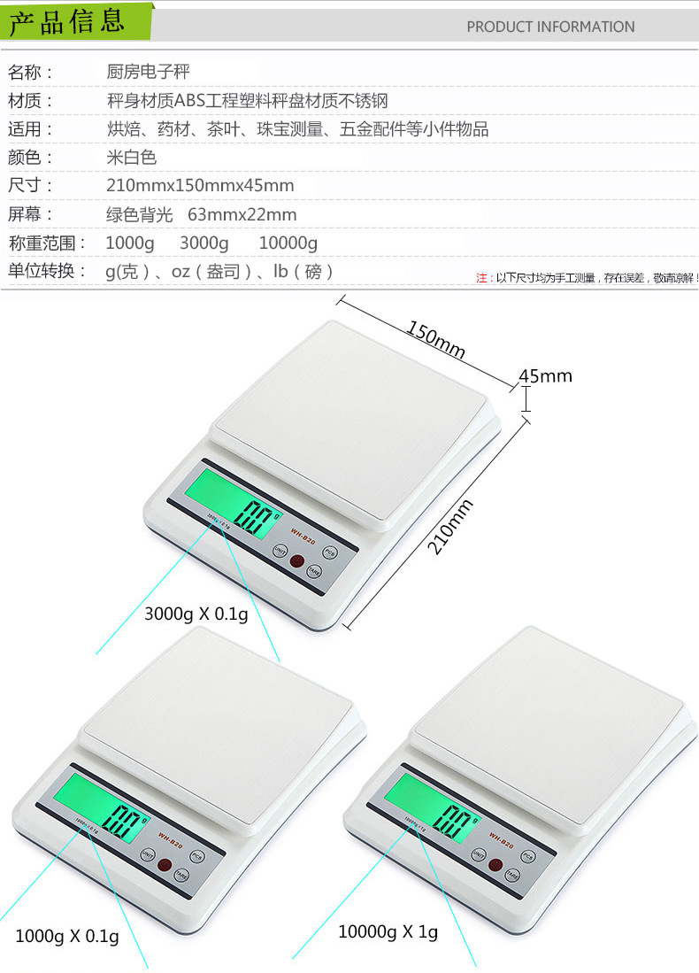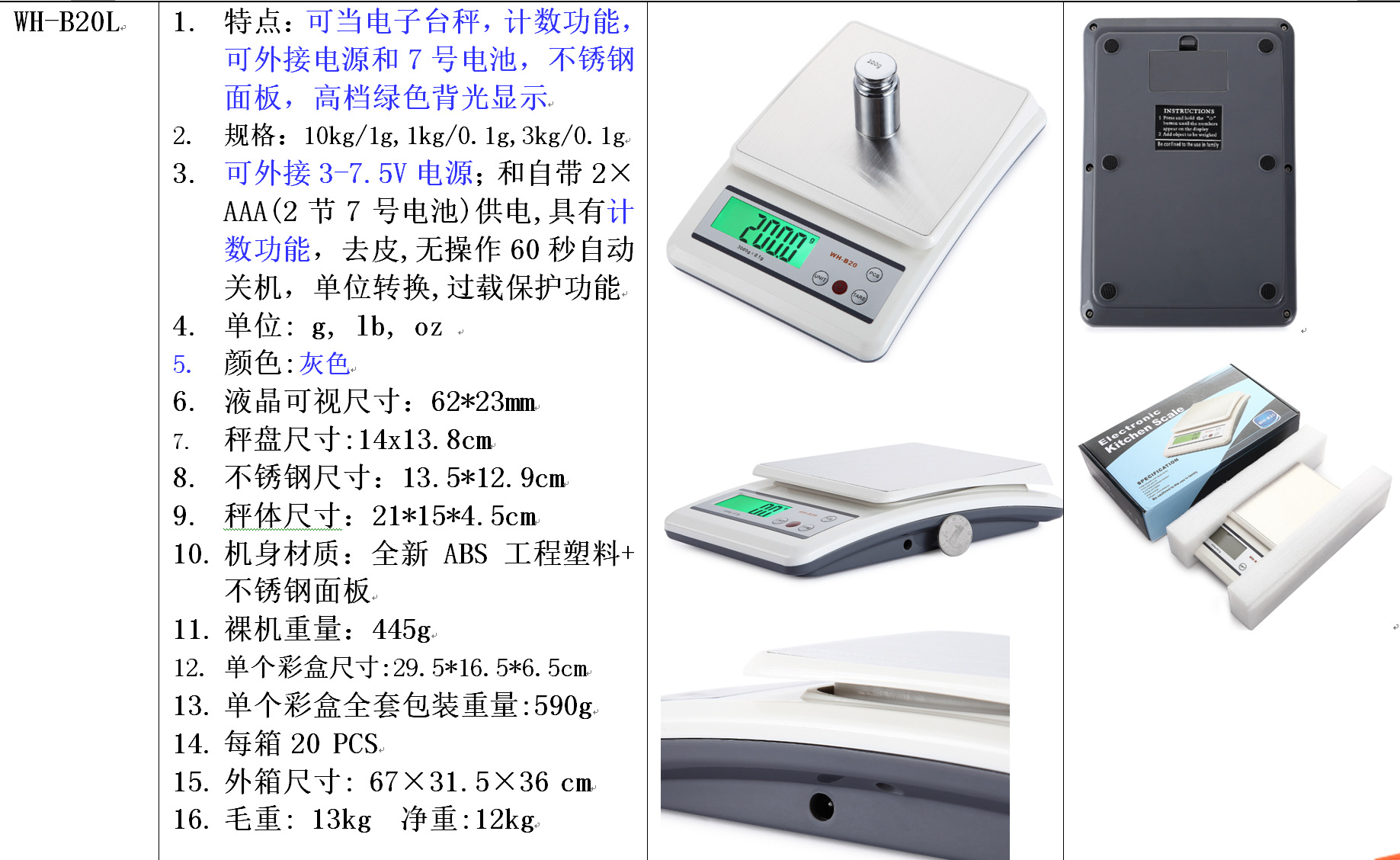 2. 规格:10kg/1g,1kg/0.1g,3kg/0.1g