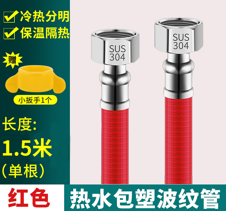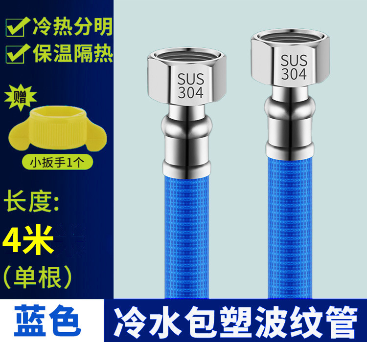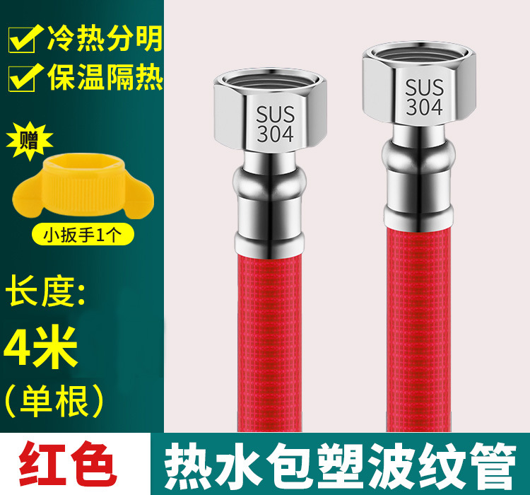 원피스 플라스틱 코팅 304 스테인레스 스틸 벨로 온수기 4 포인트 호스 금속 폭발 방지 냉수 및 온수 가정용 물 입구 파이프스토어 가기
