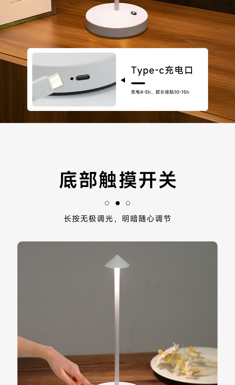 버섯 램프 국경 패션 대외 무역 LED 포인팅 테이블 램프 충전 창조적 인 야외 실내 레스토랑 장식 작은 테이블 램프