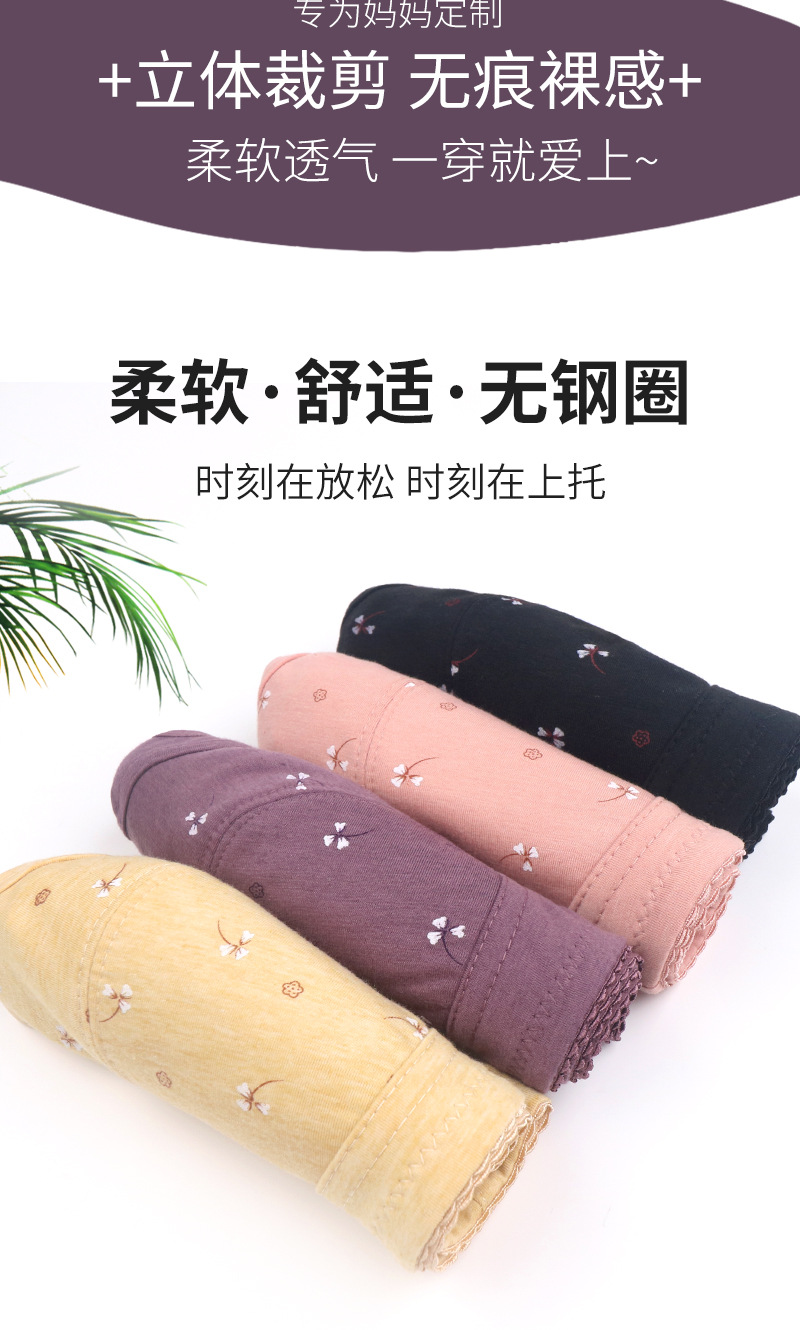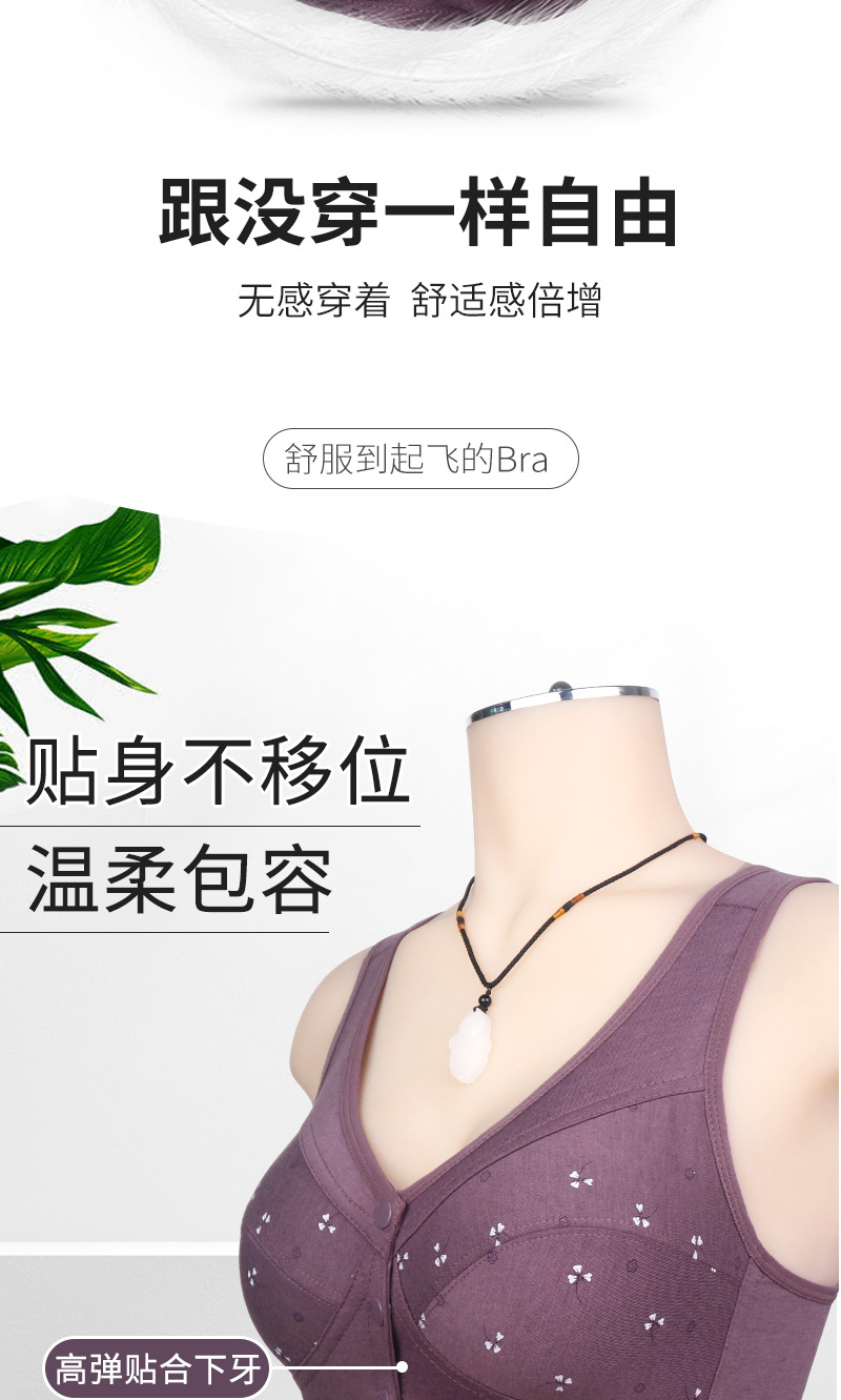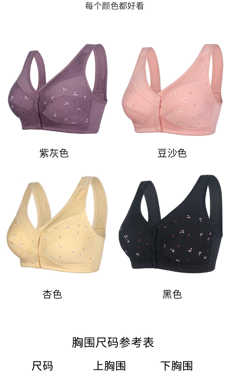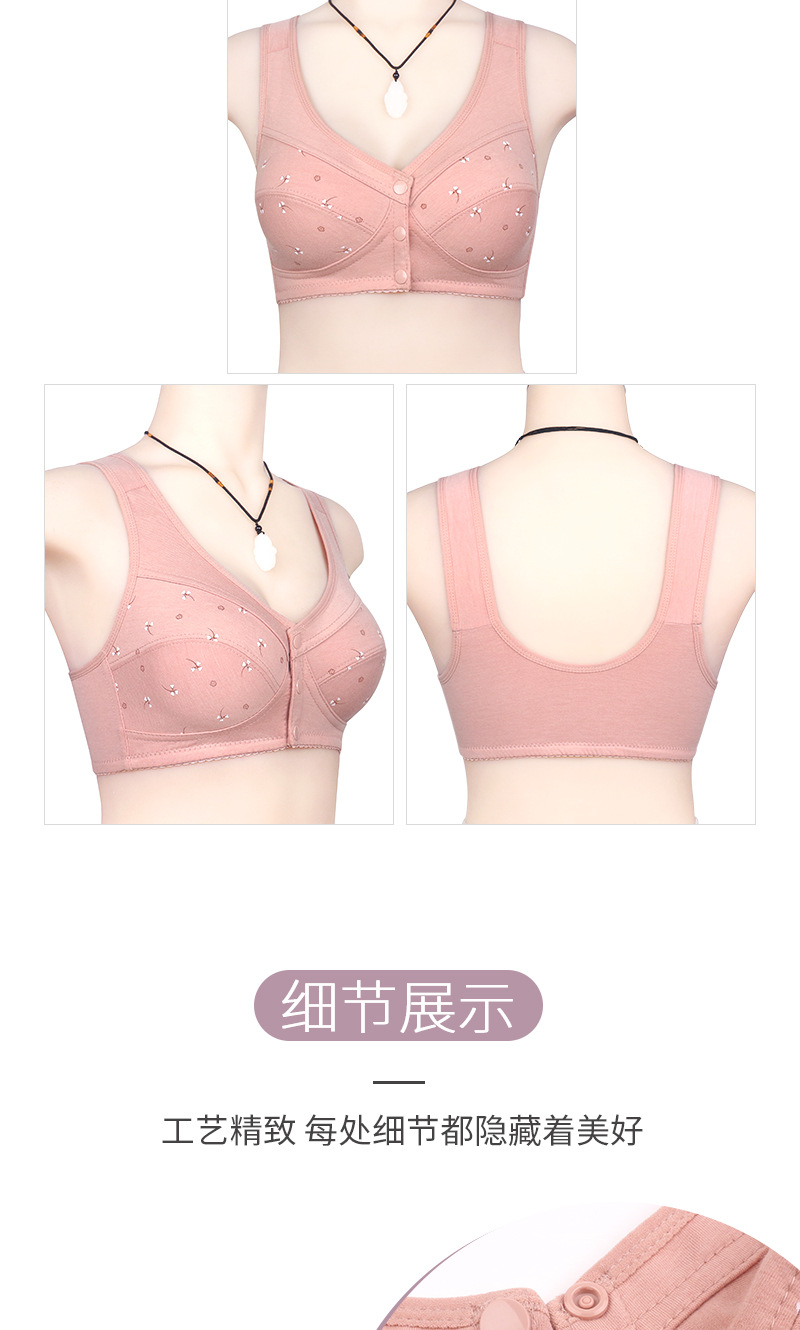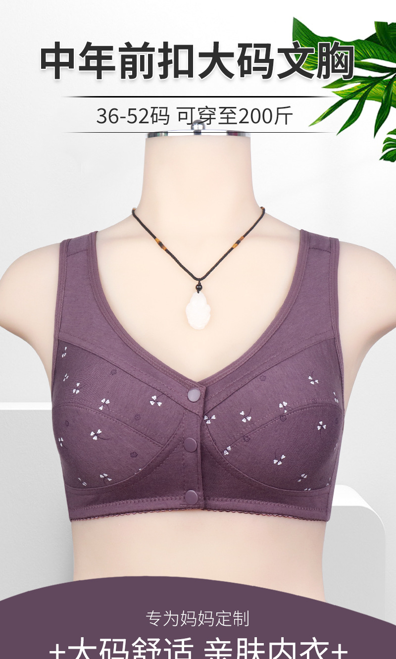소프트 코튼 얇은 컵 프론트 버클 중년 및 노인 속옷 여성의 인쇄 된 무자비한 조끼 새로운 대형 브래지어스토어 가기