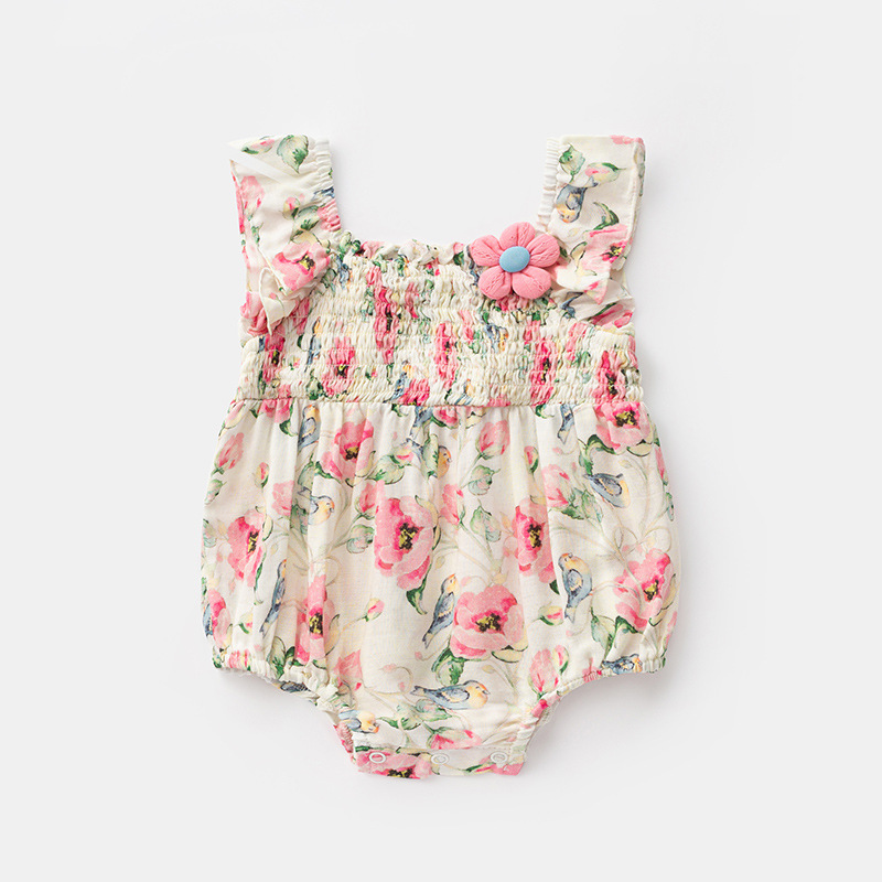 아기 여름 민소매 토끼 옷 신생아 여성 아기 얇은 비행 슬리브 한 몸 옷 꽃 샤델 슬링 백 패션 의류 3602