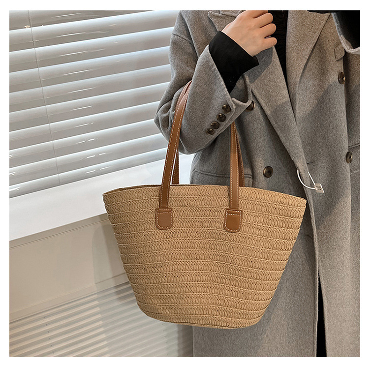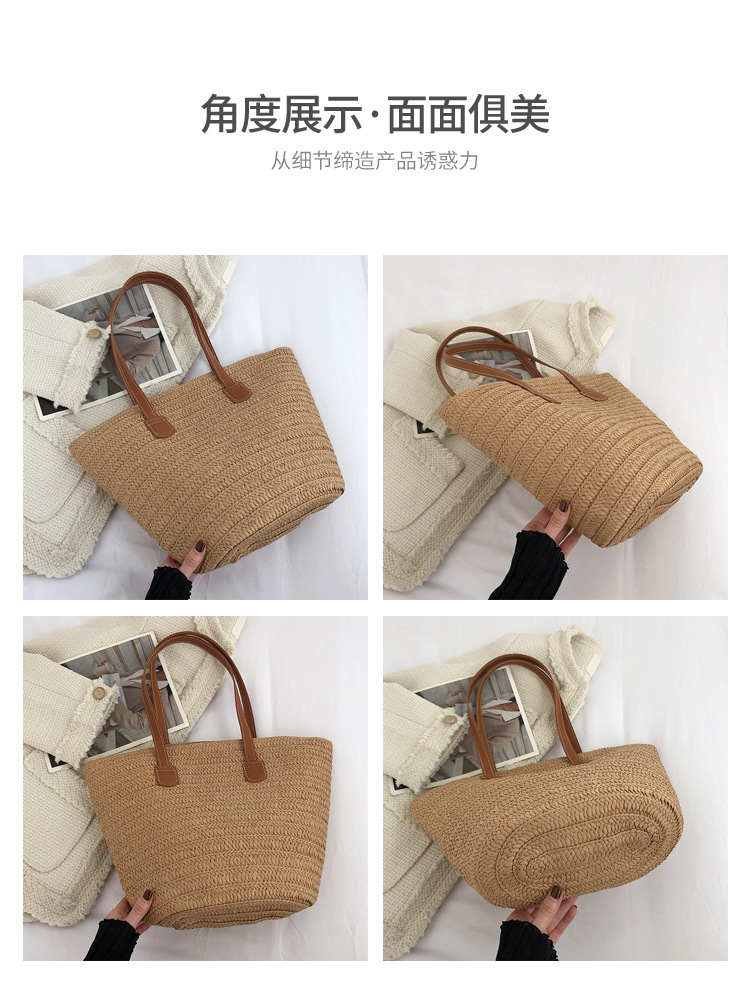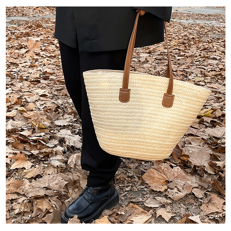 프랑스 스타일 Ins 목가적 인 스타일 잔디 짠 가방 여성 여름 대용량 어깨 야채 바구니 가방 비치 토트 백