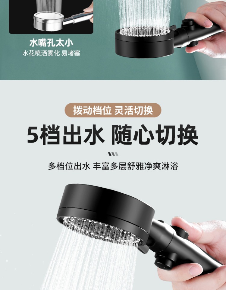 가압 핸드 헬드 샤워 헤드 블랙 다기능 욕실 샤워 샤워 헤드 도매 세트스토어 가기