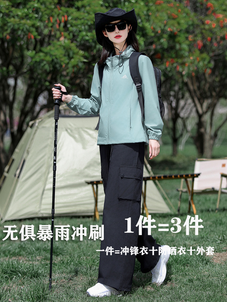 봄과 여름 얇은 여성의 후드 새로운 올 매치 단색 폭발 등산 재킷 통기성 스포츠 재킷