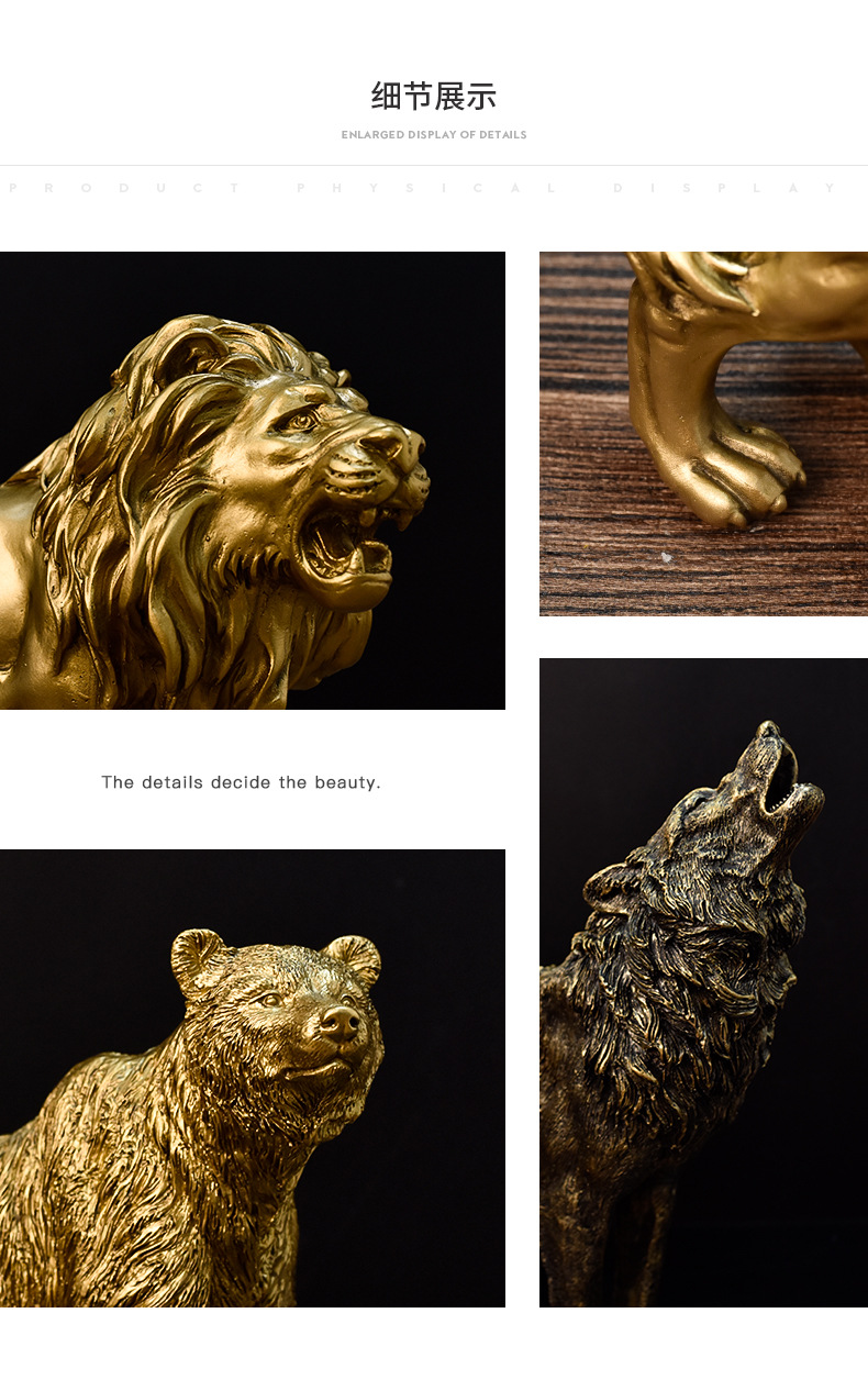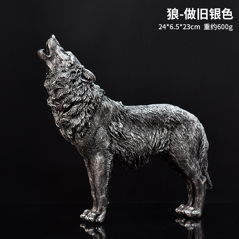 국경을 넘는 미국식 오래된 늑대 수지 공예 장식품, 모조 동물 조각, 가정 거실 와인 캐비닛 장식 선물스토어 가기