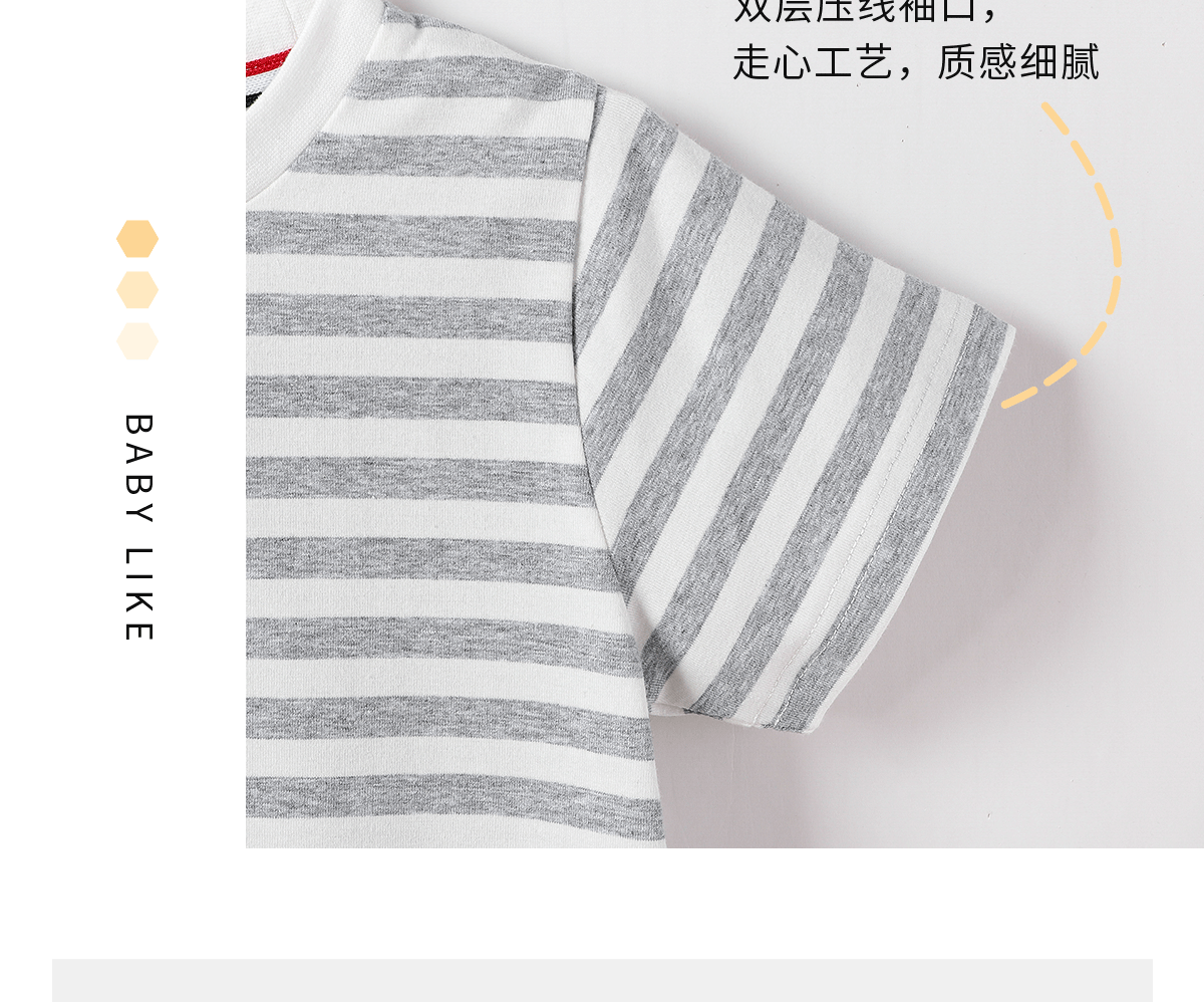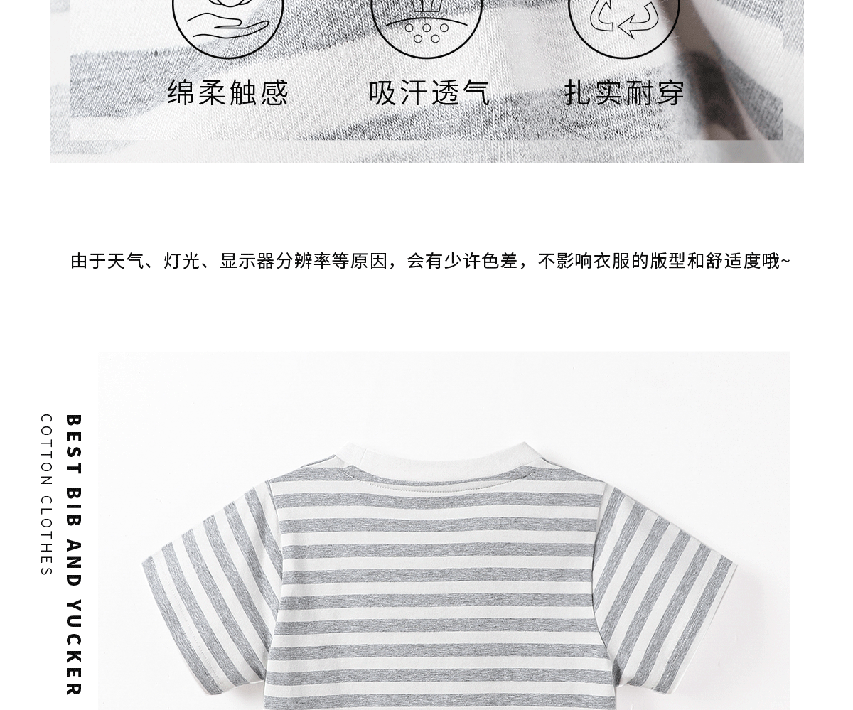 아동복 아동용 반팔 티셔츠 2024 여름 새 한국식 소년 아기 만화 줄무늬 반팔 티셔츠 둥근 목 셔츠스토어 가기