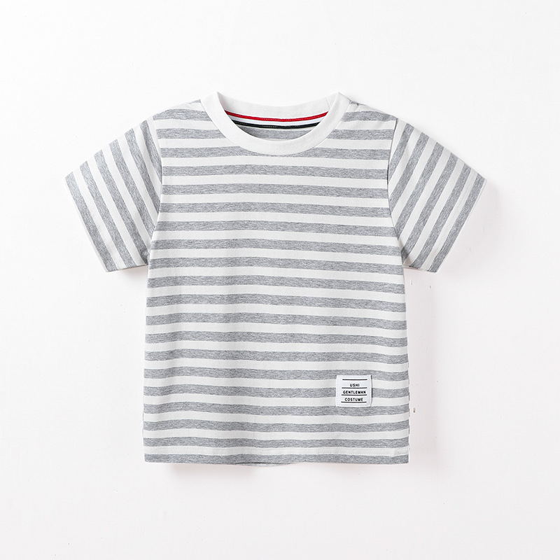 아동복 아동용 반팔 티셔츠 2024 여름 새 한국식 소년 아기 만화 줄무늬 반팔 티셔츠 둥근 목 셔츠