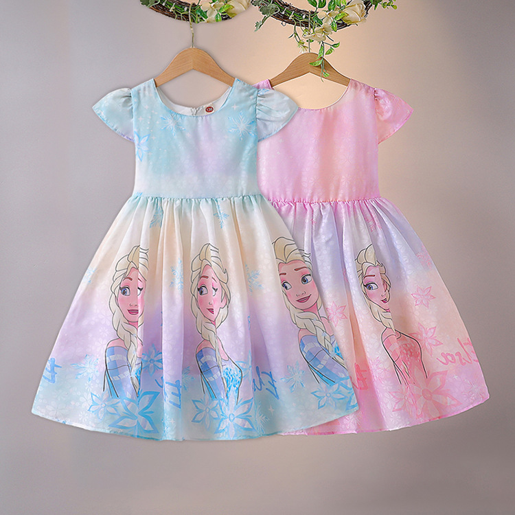 소녀 원피스 냉동 여름 경량 공주 아이샤 원피스 서양식 다채로운 만화 어린이 조끼 치마
