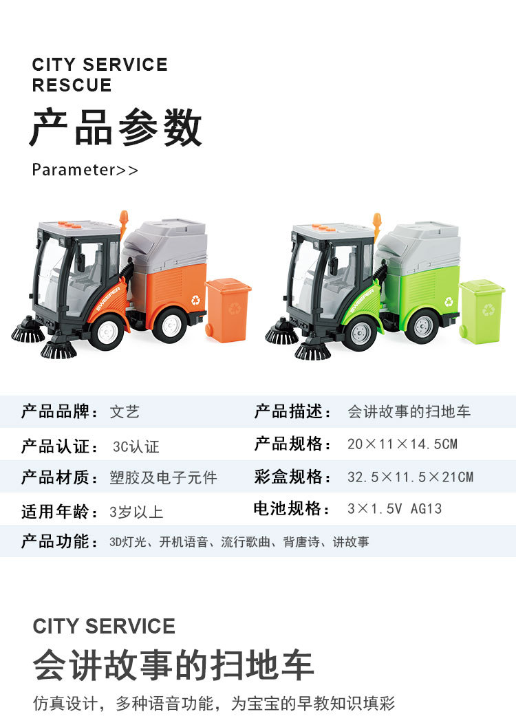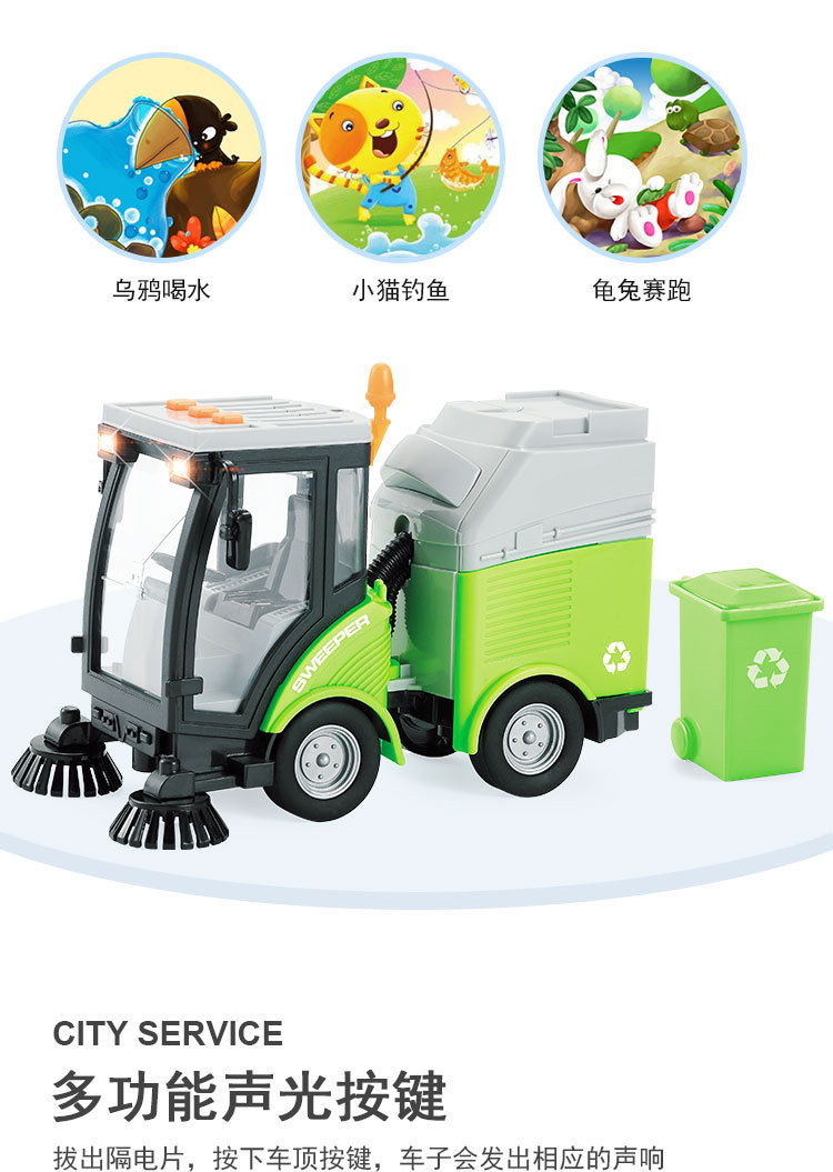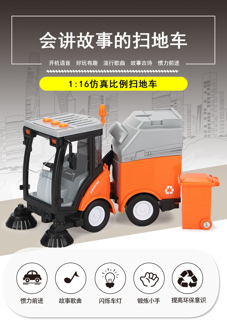아트 680 어린이 도로 스위퍼 이야기 음악 관성 트럭 소방차 스프링클러 쓰레기 트럭 스위퍼