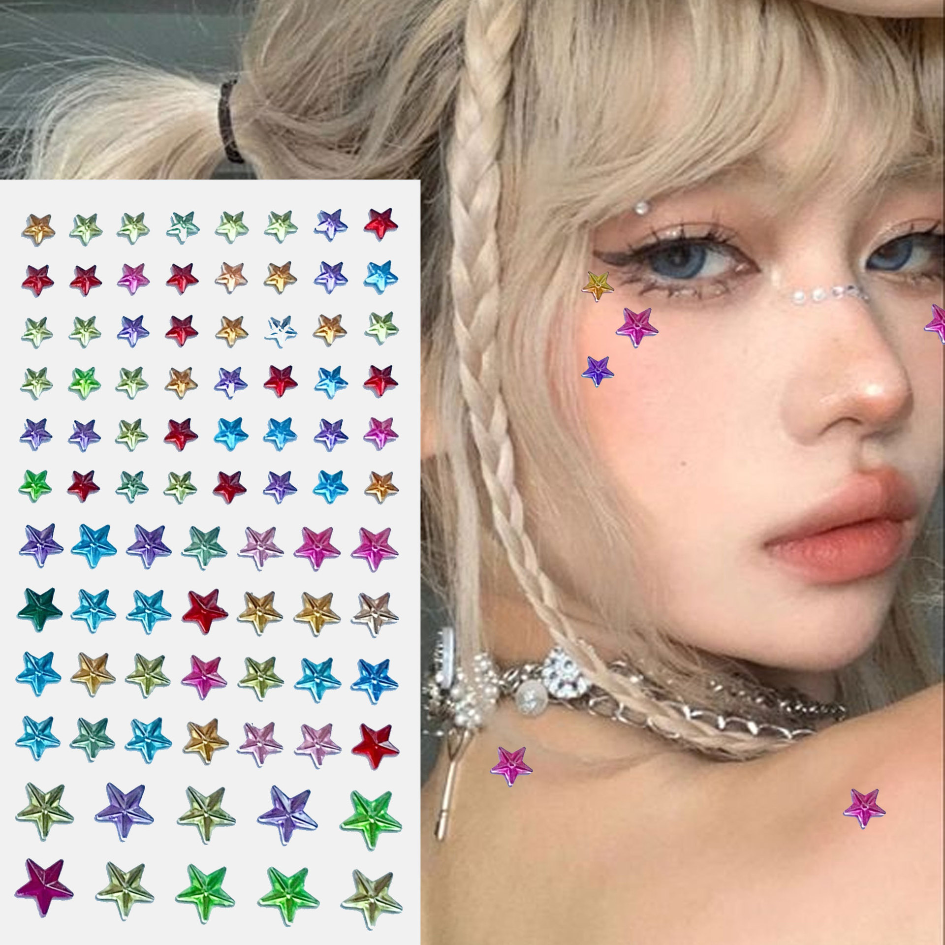 스타 크리스탈 다이아몬드 스티커 DIY 자체 접착 보석 얼굴 맞춤형 메이크업 장식 보석 다이아몬드 스티커