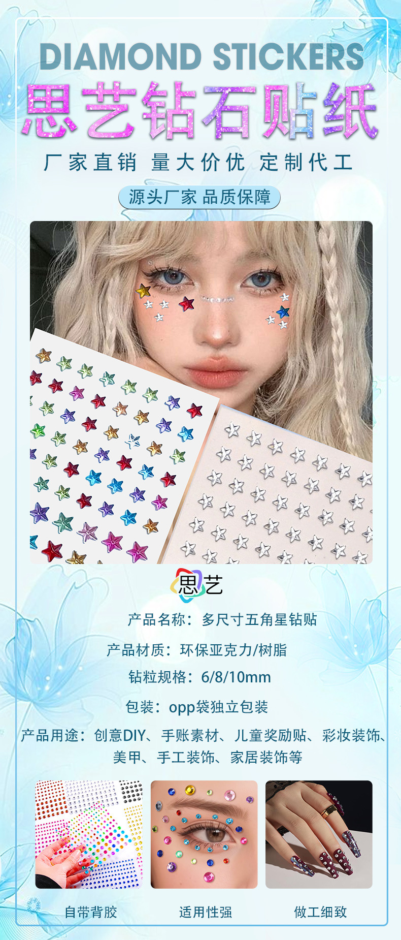 스타 크리스탈 다이아몬드 스티커 DIY 자체 접착 보석 얼굴 맞춤형 메이크업 장식 보석 다이아몬드 스티커스토어 가기
