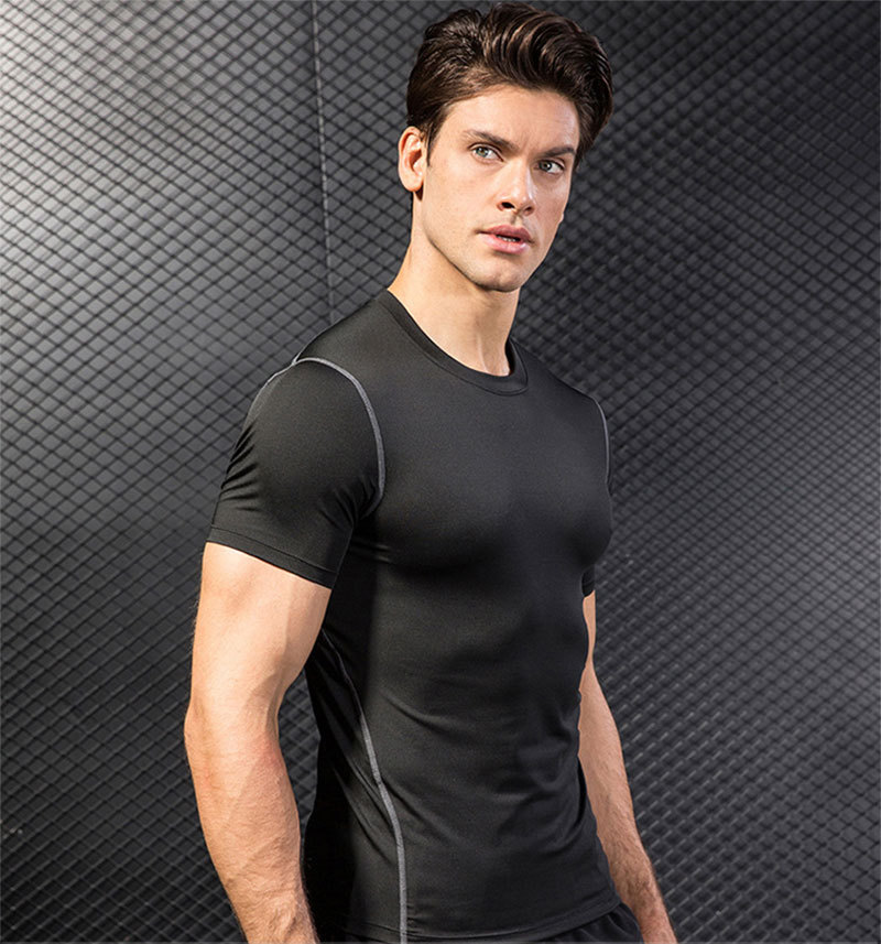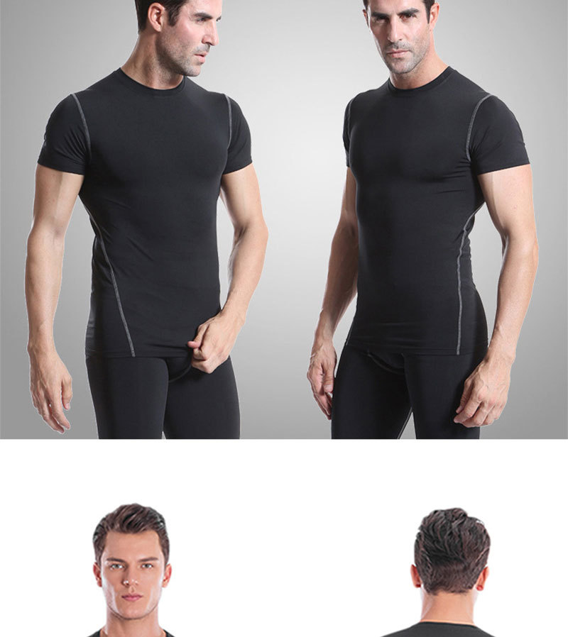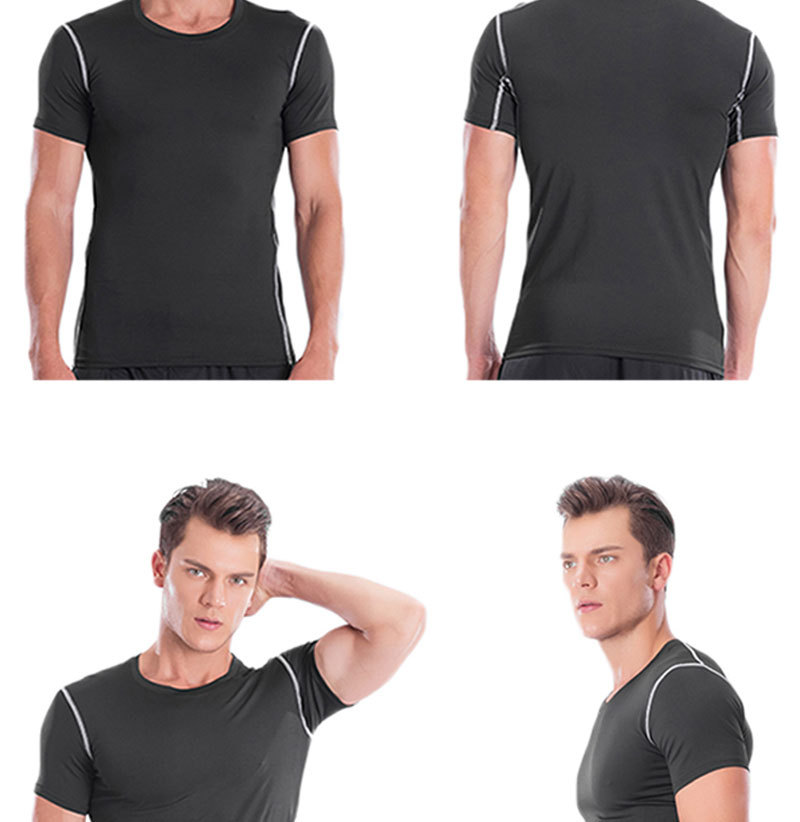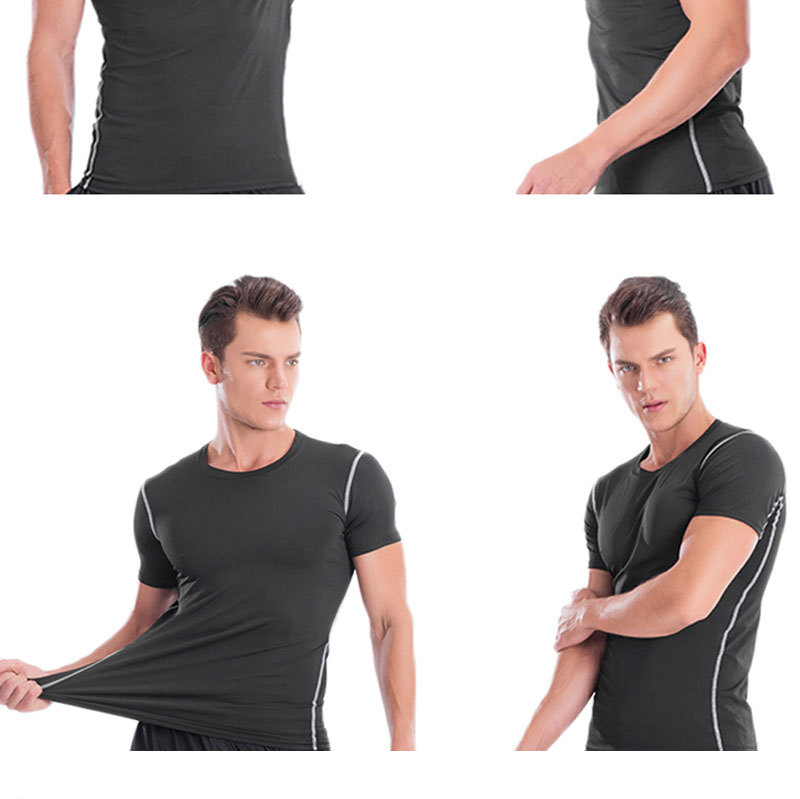 남자 스포츠 꽉 끼는 반팔 육상 훈련 높은 탄성 빠른 건조 통기성 땀 흡수성 농구 러닝 땀-위킹 피트니스 세트