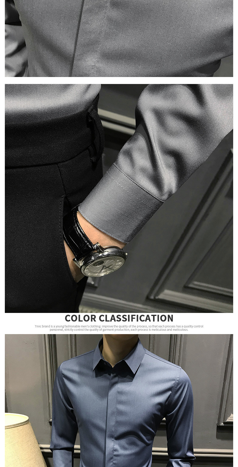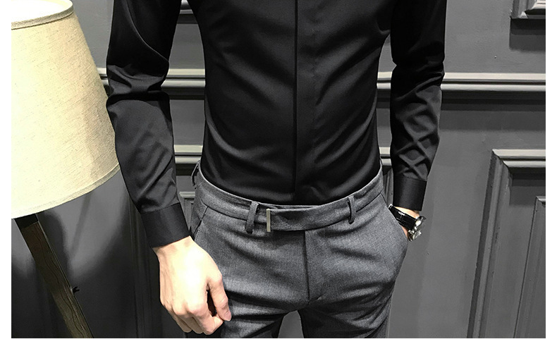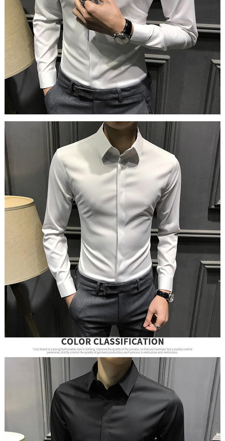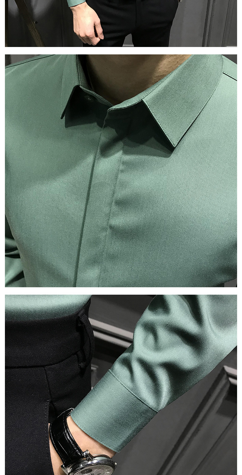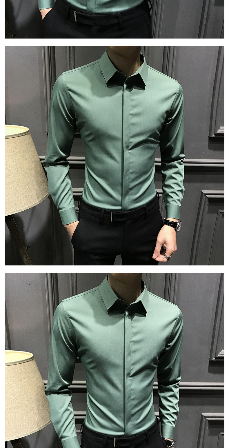 봄철 작업복 신상 남성 셔츠 긴팔 한국 스타일 비즈니스 히든 버튼 트렌디 캐주얼 슬림핏 정장 다림질 필요 없는 셔츠