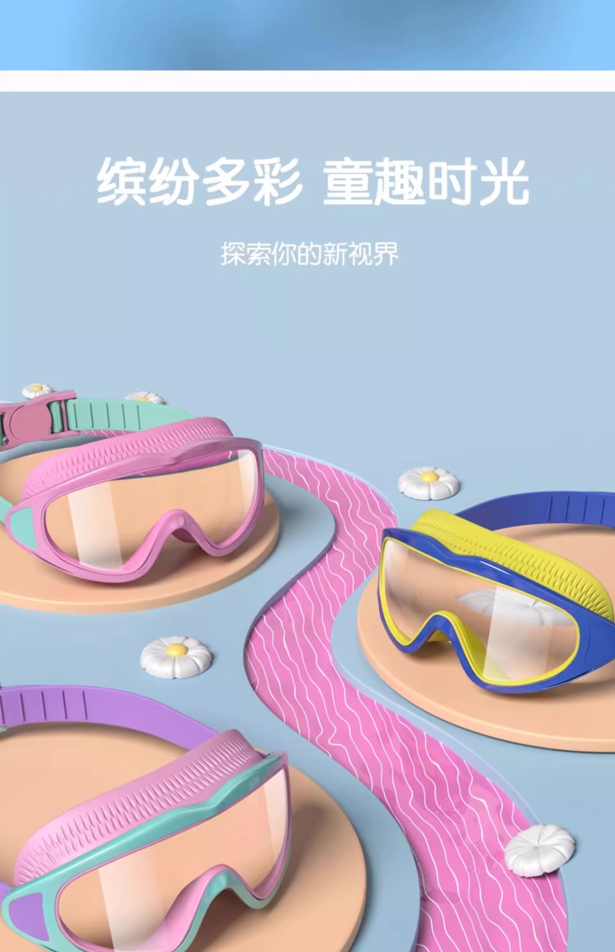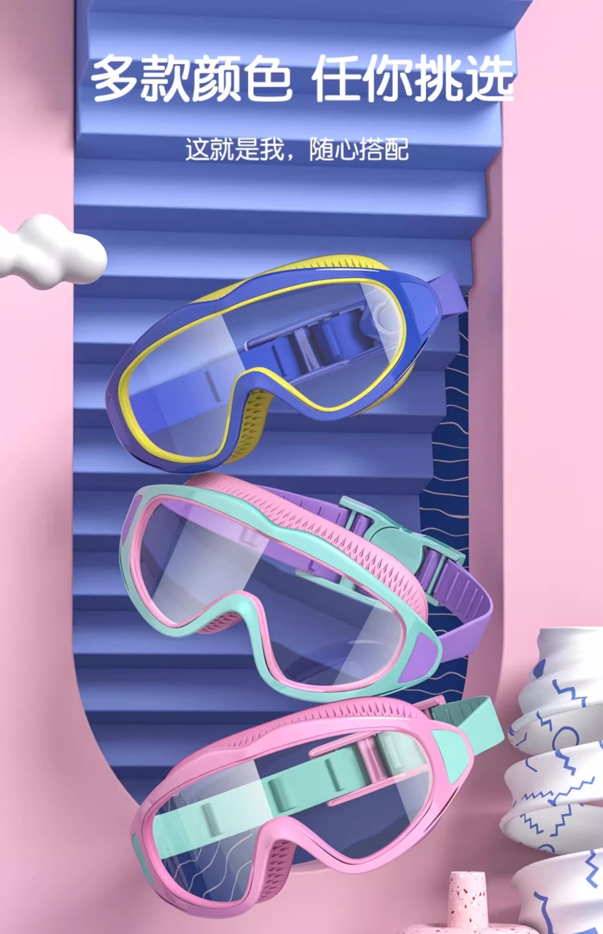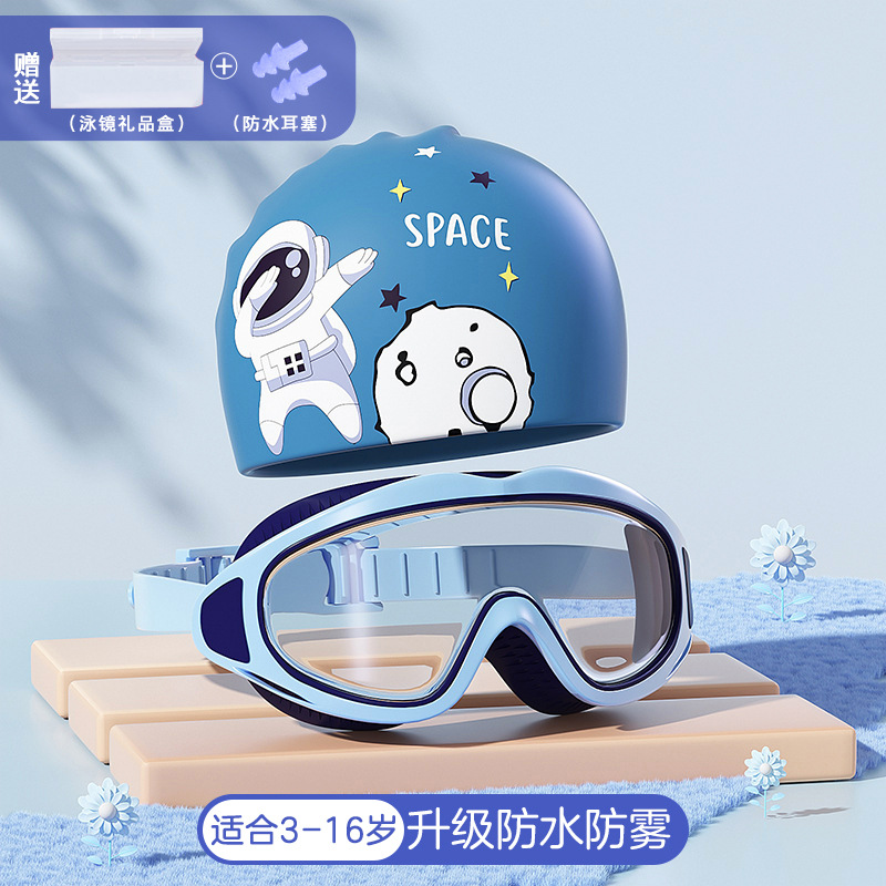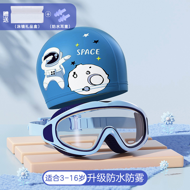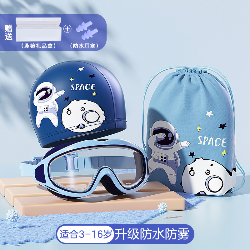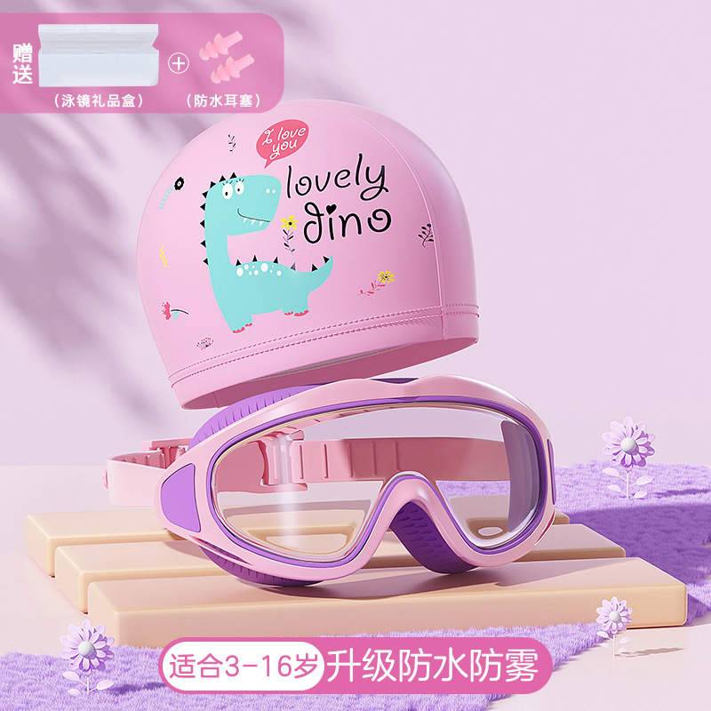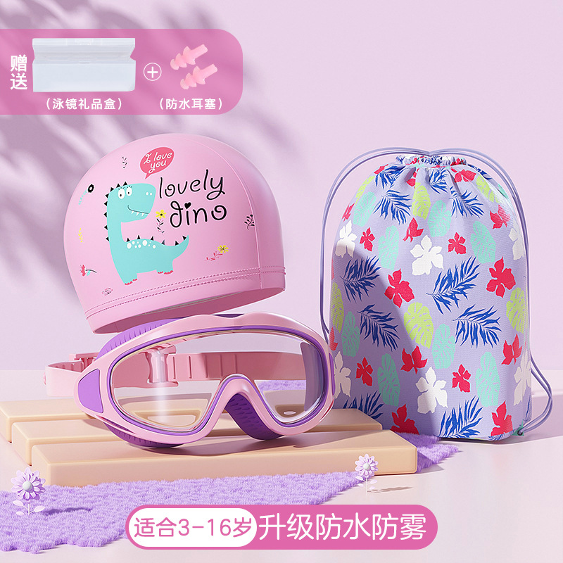 어린이 고글 수영 모자 소년과 소녀 수영 안경 방수 안티 안개 HD 대형 프레임 다이빙 고글 전문 장비 세트