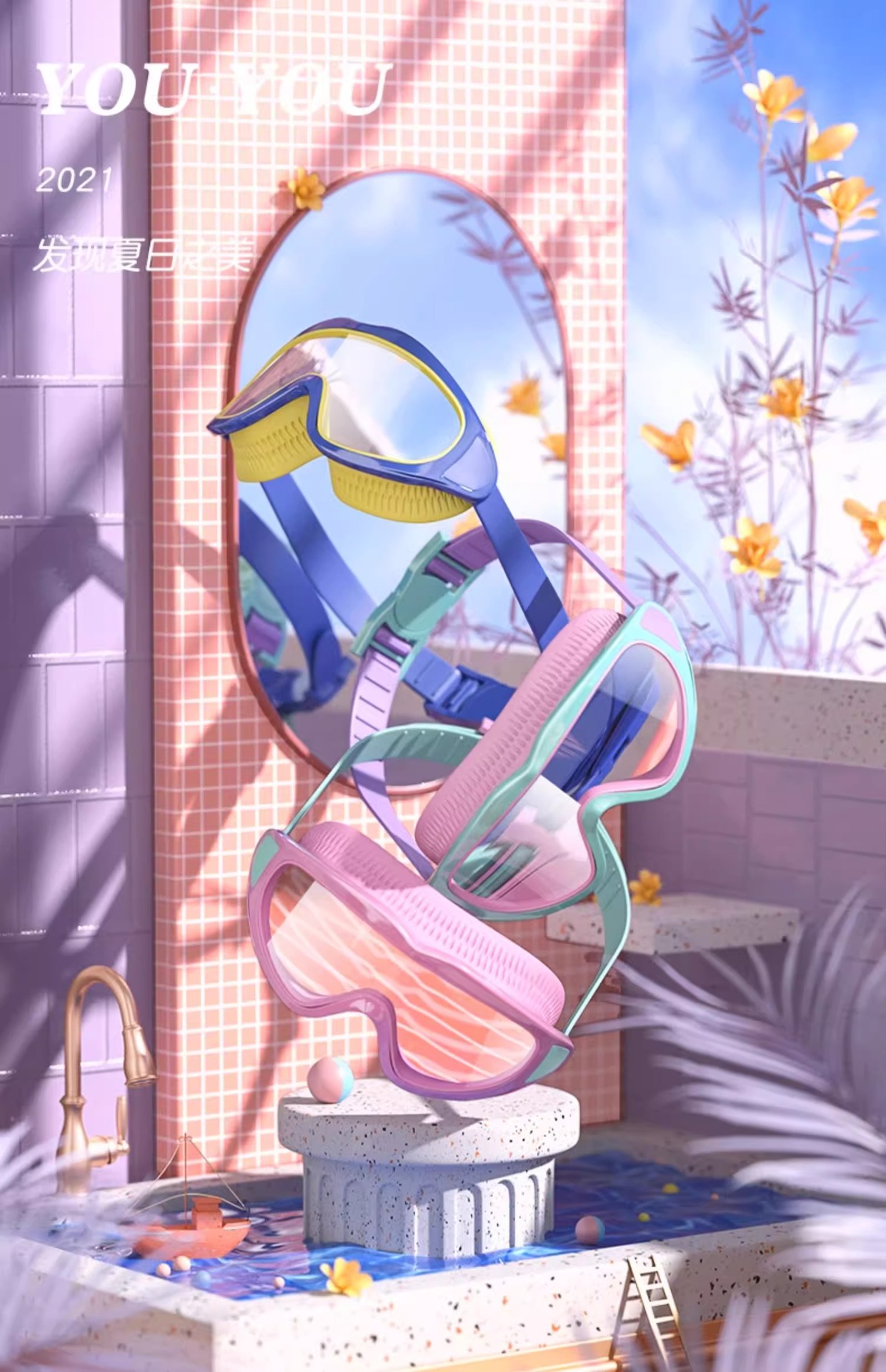 • 꿈 보라색 PU 수영 모자 (방수 귀마개 포함)