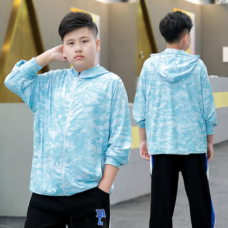 통통한 소년의 선 스크린 의류 여름 얇은 2024 새로운 스타일 어린이 아이스 실크 경량 재킷 소년 및 청소년