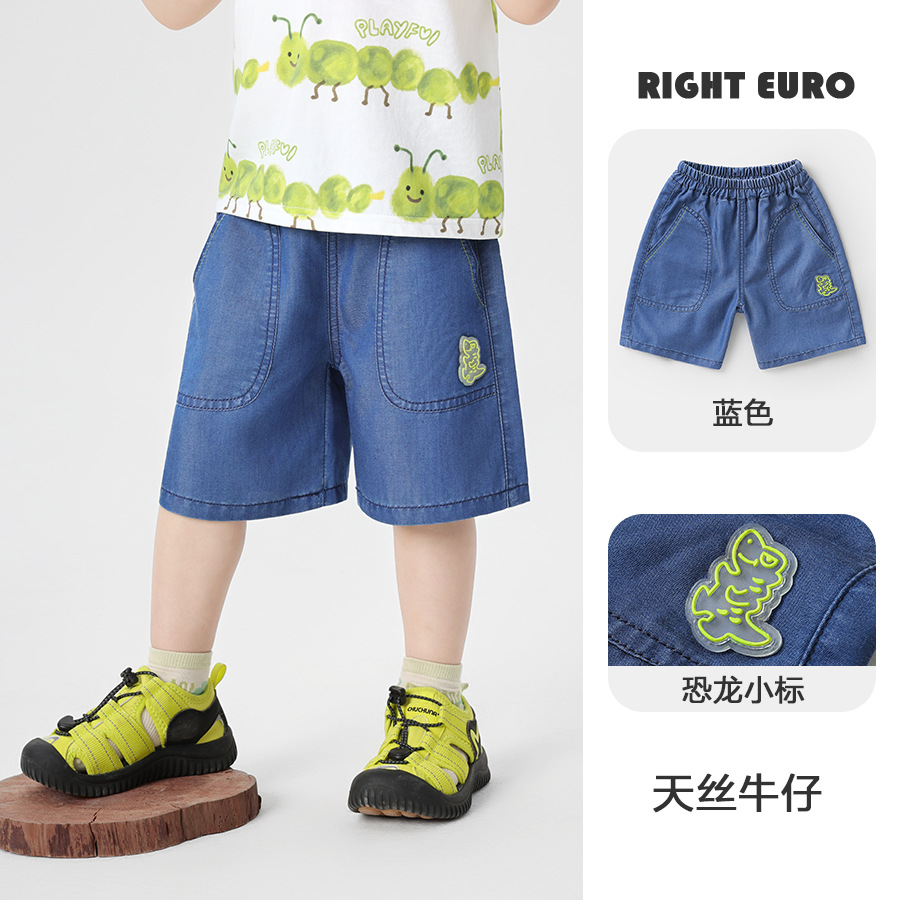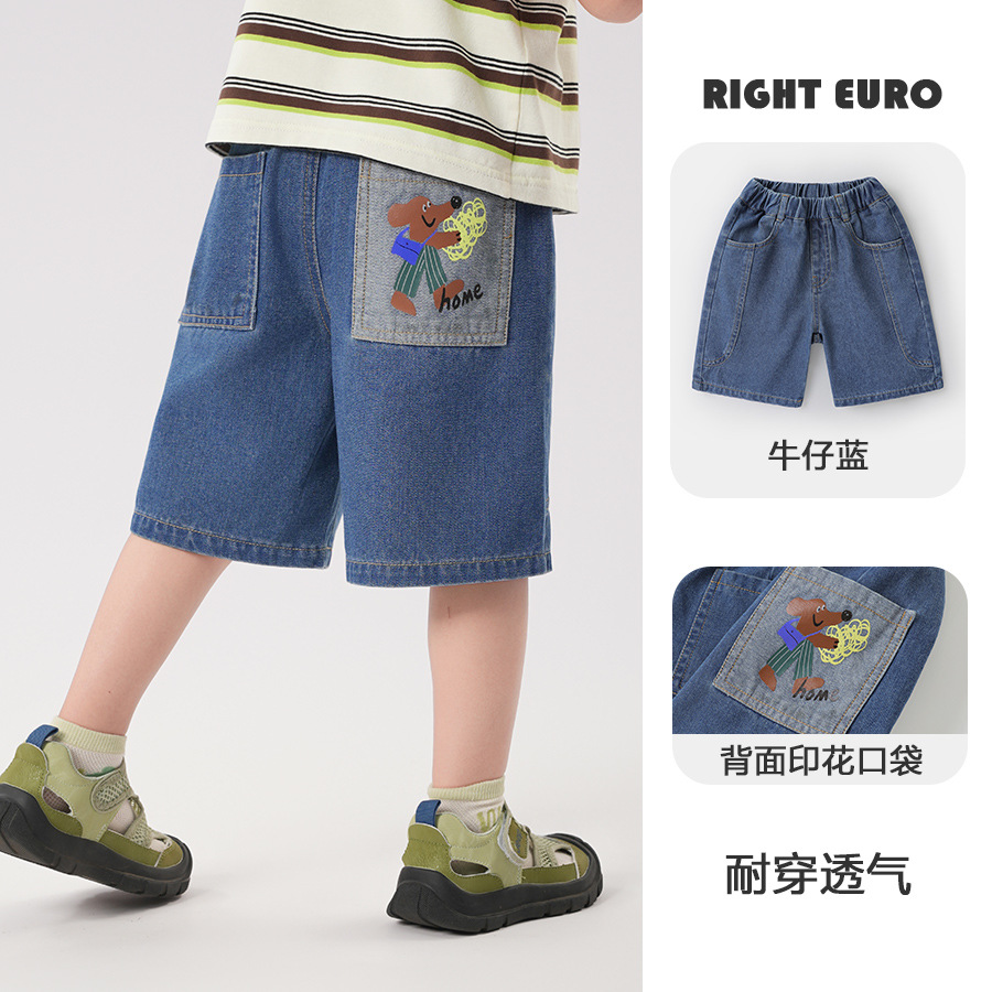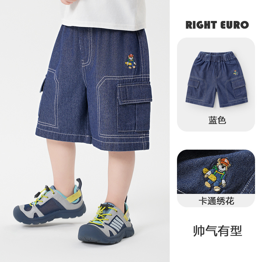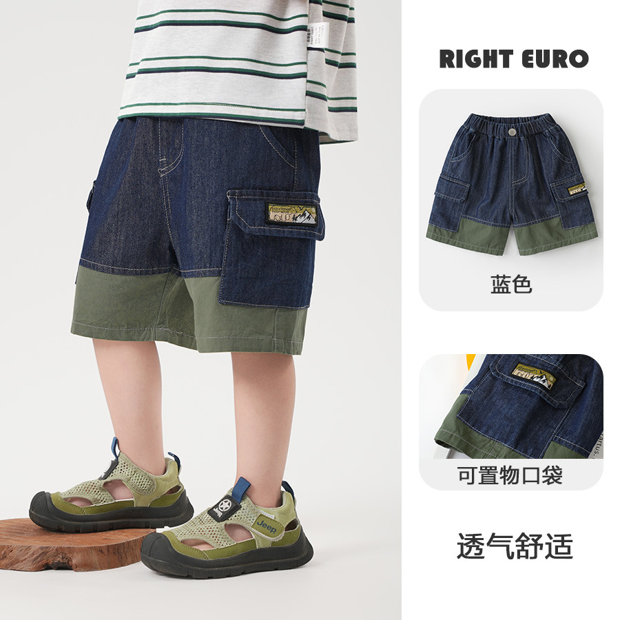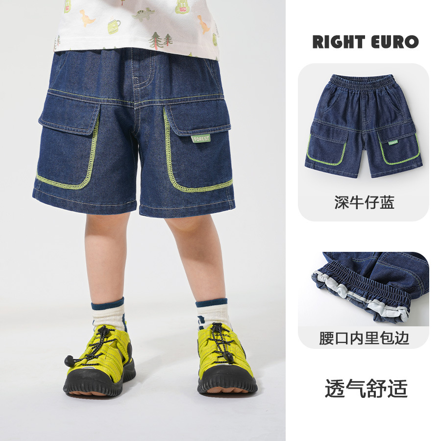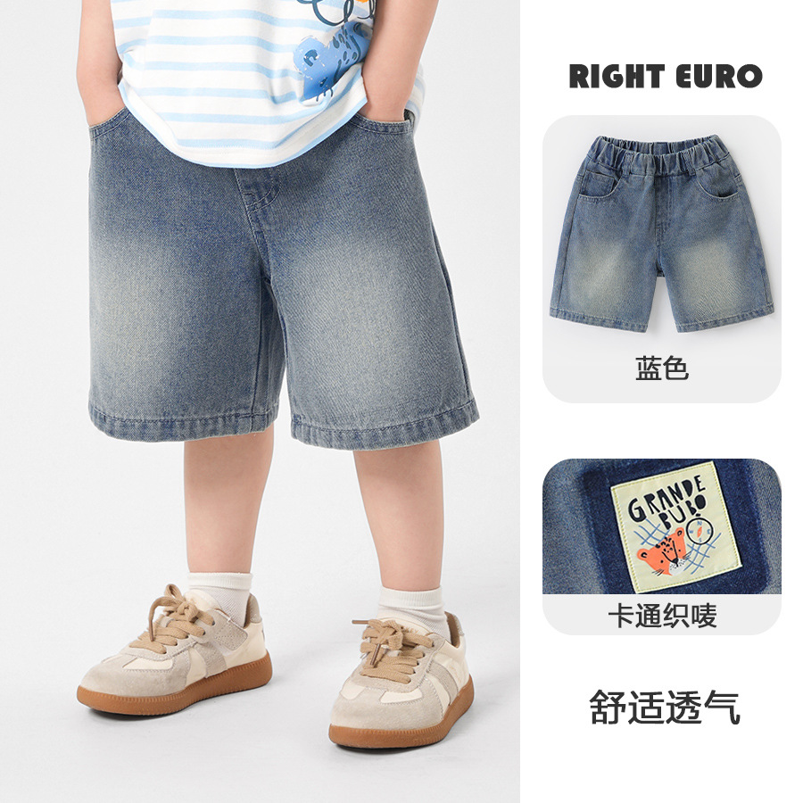 오른쪽 유럽 소년 데님 짧은 바지 2025 새로운 여름 어린이 착용 어린이 아기 캐주얼 바지 여름스토어 가기
