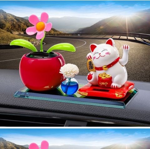 자동차 장식품 자동차 향수 태양 스윙 행운의 고양이 자동차 액세서리 장식 용품