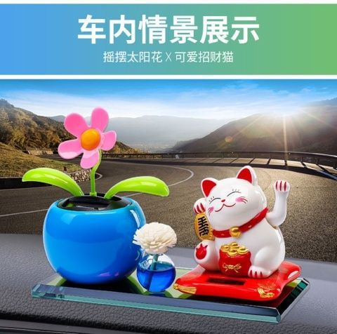 자동차 장식품 자동차 향수 태양 스윙 행운의 고양이 자동차 액세서리 장식 용품스토어 가기