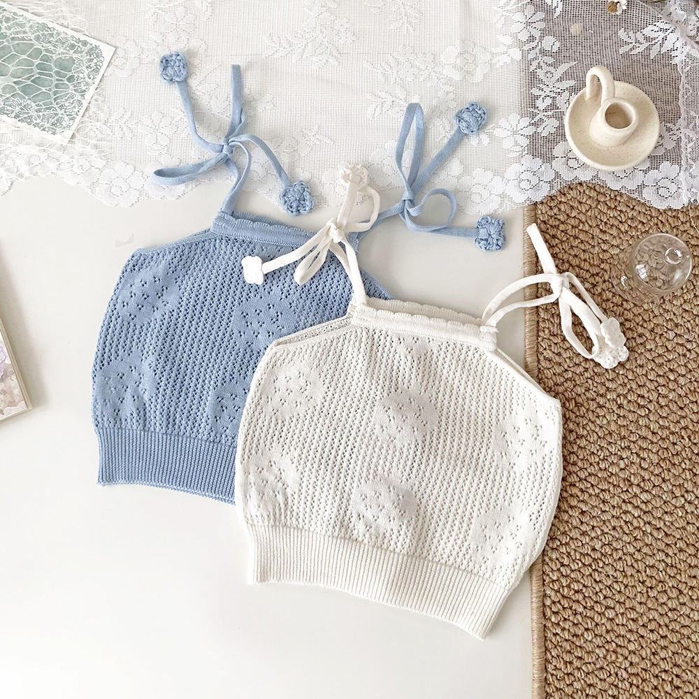 Cutemily 여름 아기 소녀의 니트 조끼 소녀 할로우 스트랩 크로 셰 뜨개질 얇은 카미 솔