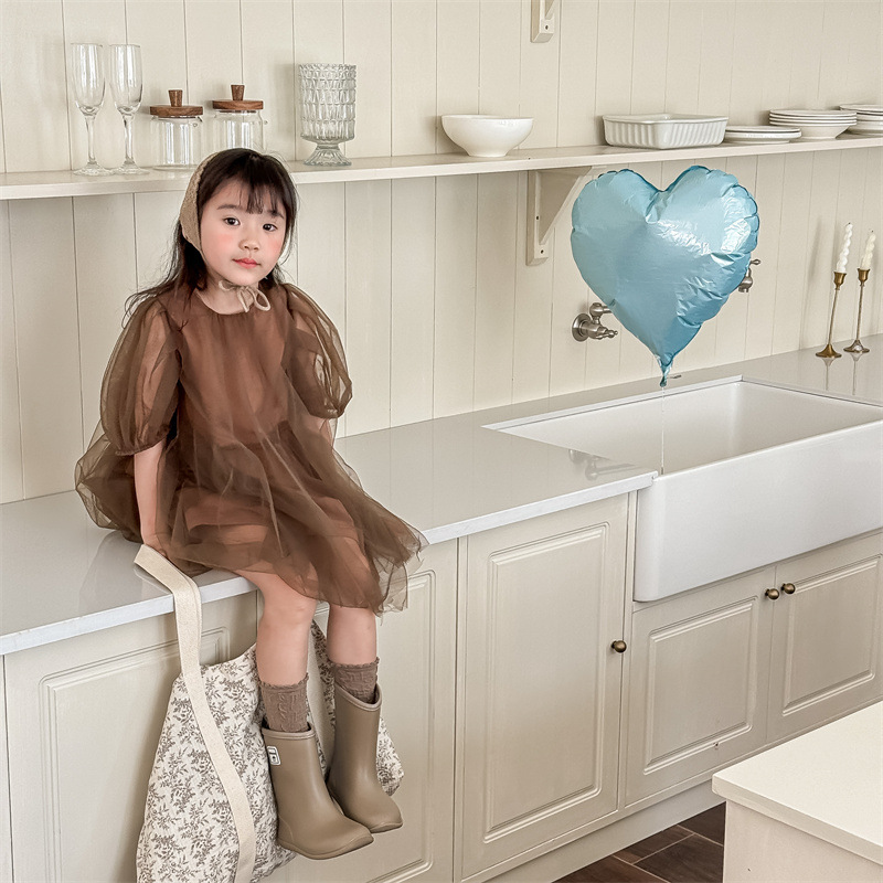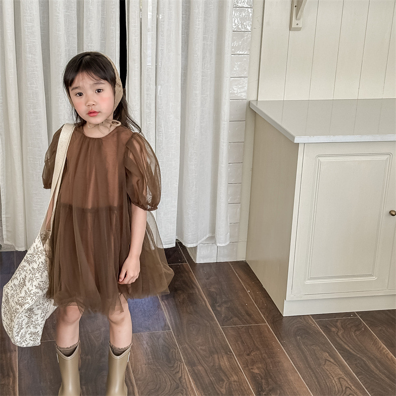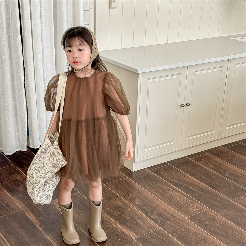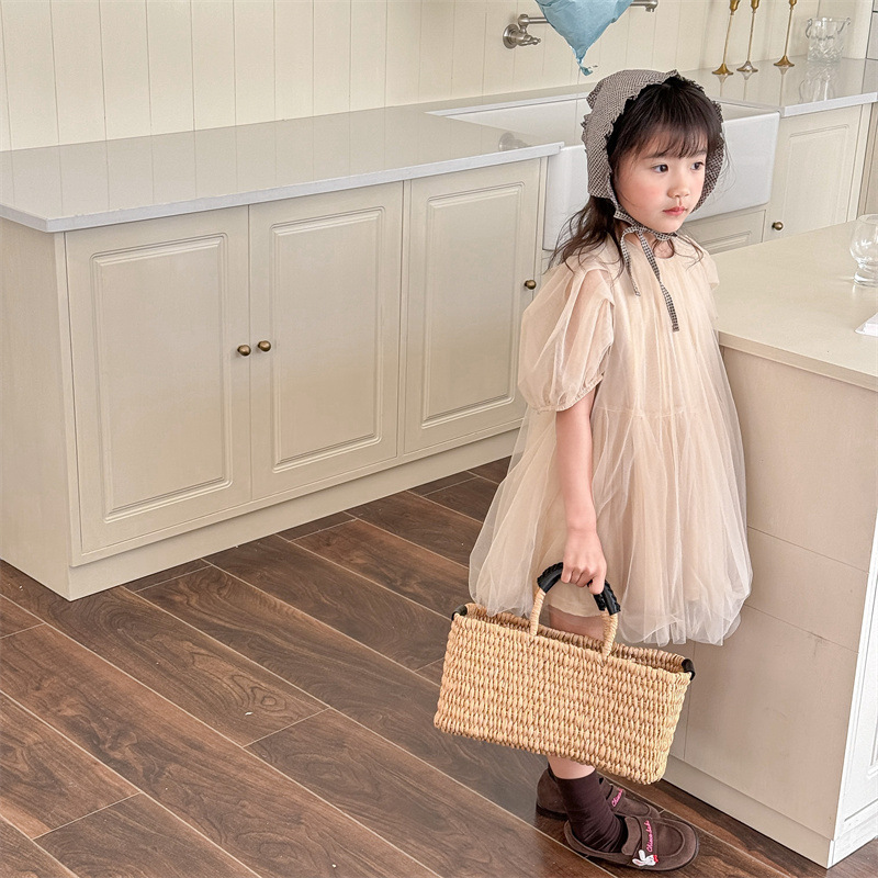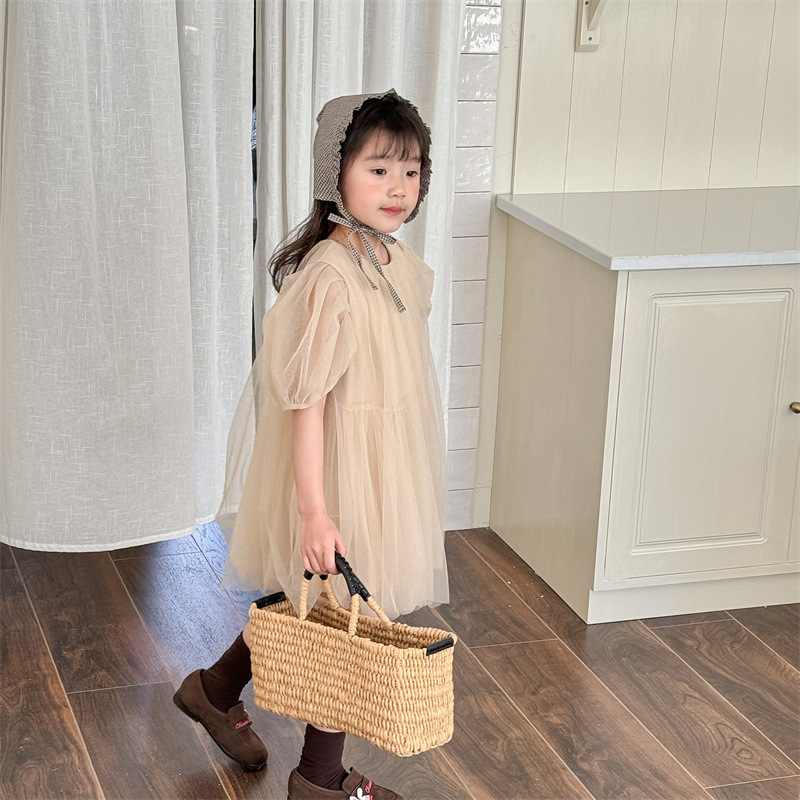 2024 봄과 여름 여자 베일 원피스 소녀 아기 달콤한 퍼프 소매 부드러운 공주 원피스 요정 원피스 어린이 원피스스토어 가기