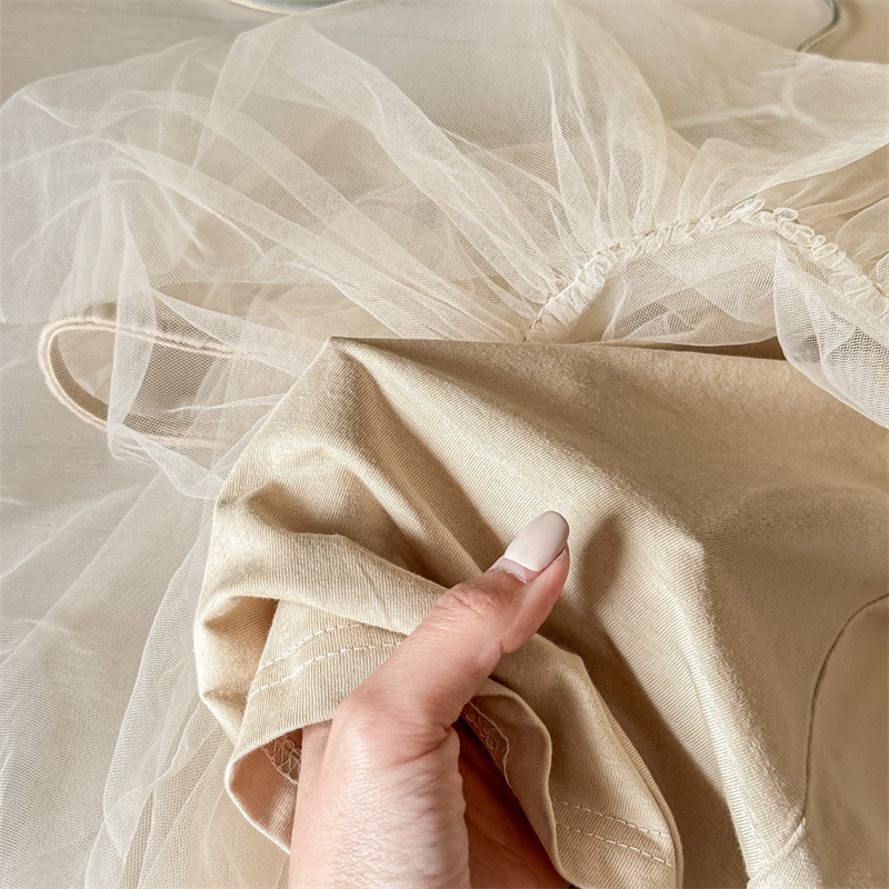 2024 봄과 여름 여자 베일 원피스 소녀 아기 달콤한 퍼프 소매 부드러운 공주 원피스 요정 원피스 어린이 원피스