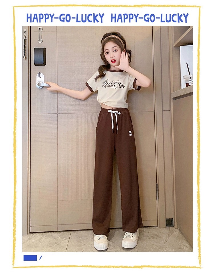 소녀의 세트 2024 여름 세트 대형 어린이 여름 반팔 스트레이트 바지 투피스 세트 소녀의 순면 스포츠 세트