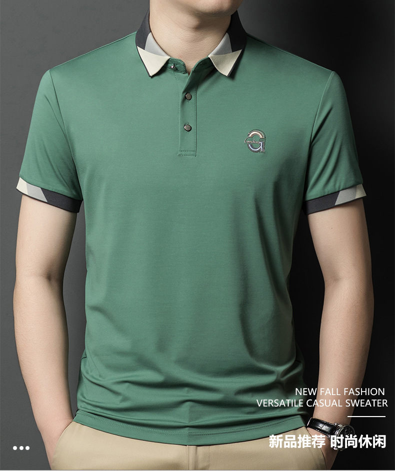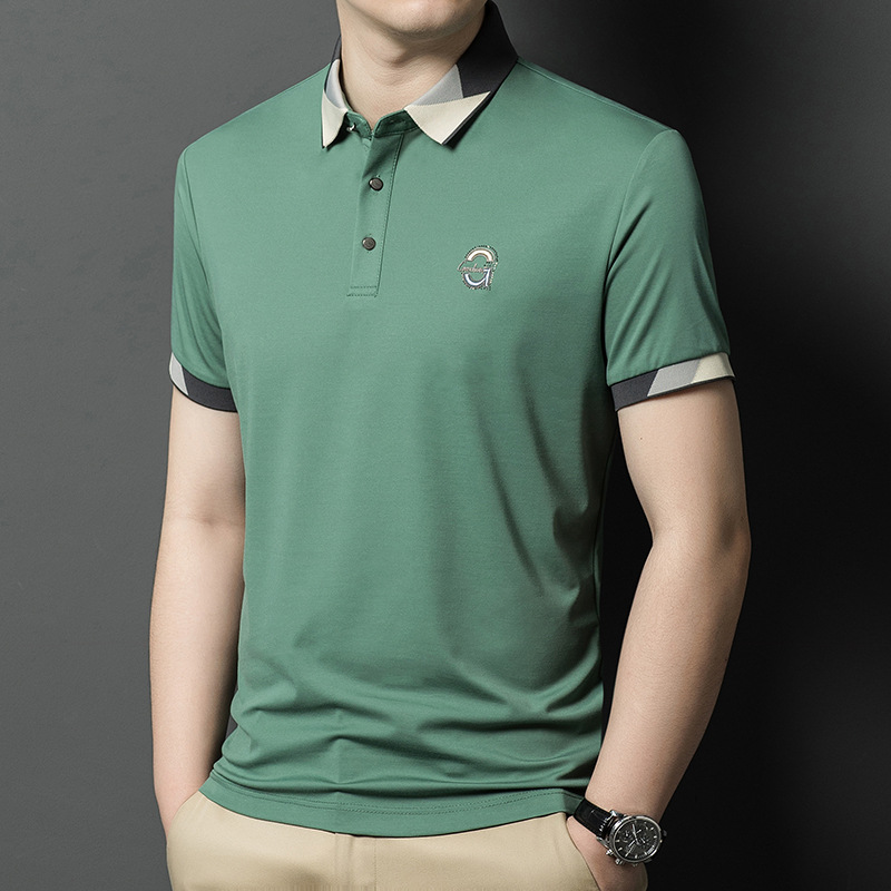 하이 퀄리티 컬러 매칭 머서라이즈면 POLO 셔츠 남성용 여름 옷깃 라인석 짧은 소매 티셔츠 수 놓은 얇은 툴링 하프 슬리브
