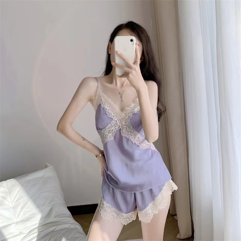 • 새틴 실크 잠옷-마이크론 레이스