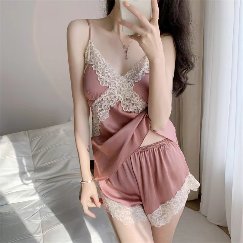 • 새틴 실크 세트-핑크 레이스