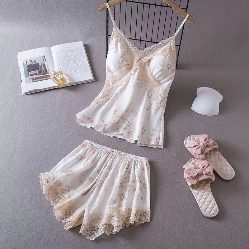 여름용 섹시한 여성 잠옷, 아이스 실크 순수한 매력 레이스 슬립 드레스, 여름 스타일, 가슴 패드 포함, 작은 가슴에도 시원한 착용감