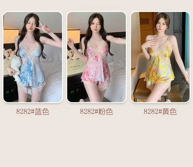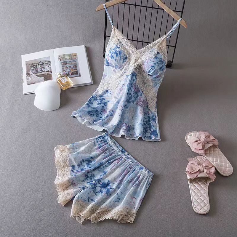 여름용 섹시한 여성 잠옷, 아이스 실크 순수한 매력 레이스 슬립 드레스, 여름 스타일, 가슴 패드 포함, 작은 가슴에도 시원한 착용감스토어 가기