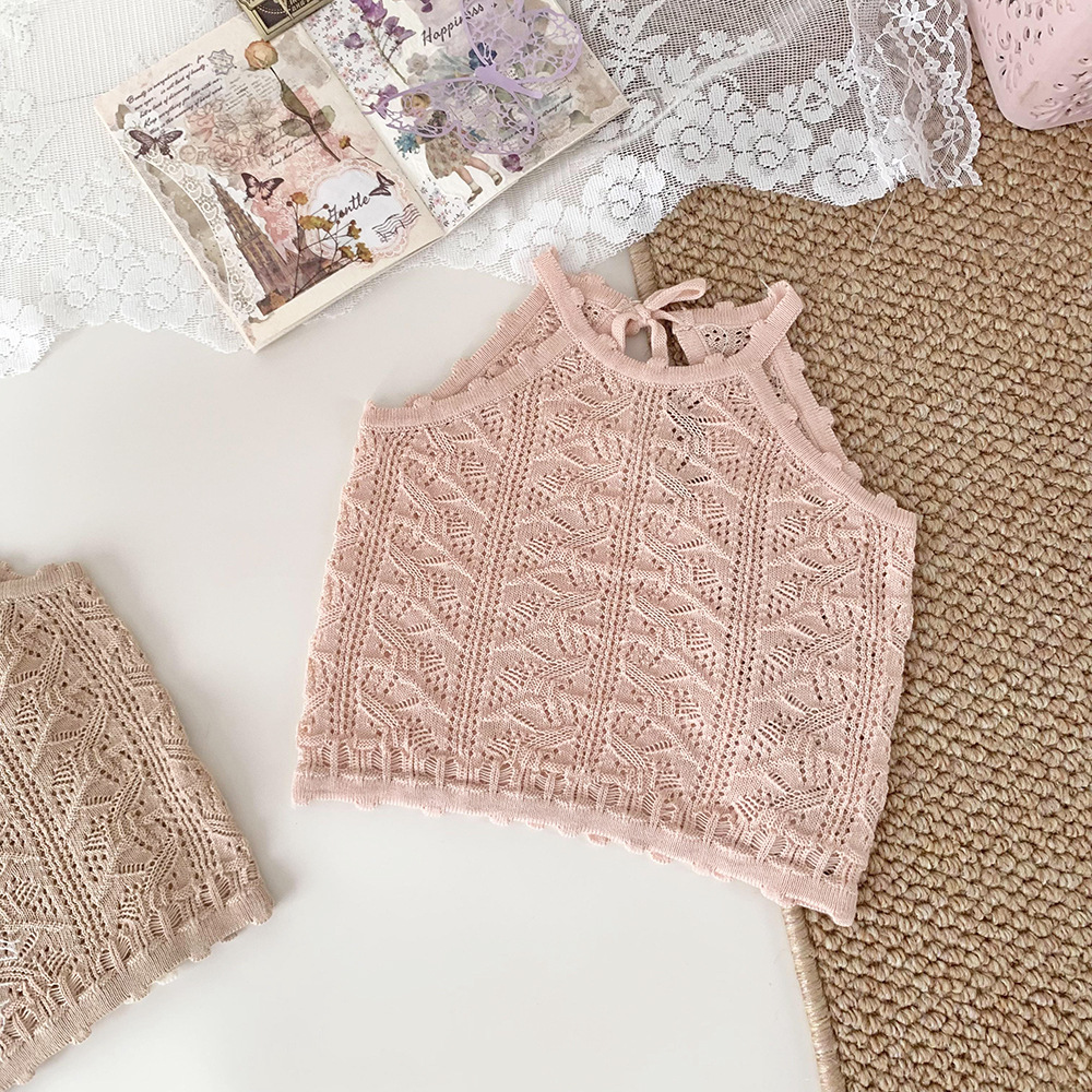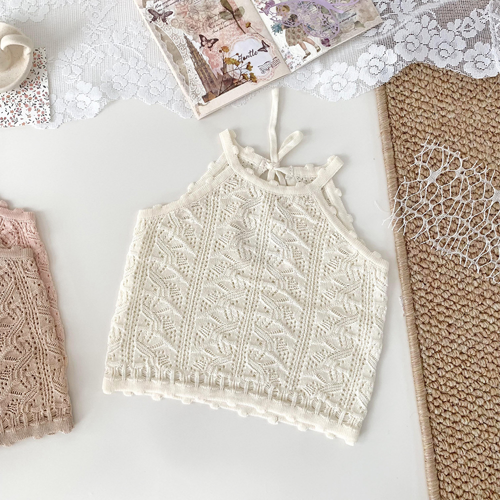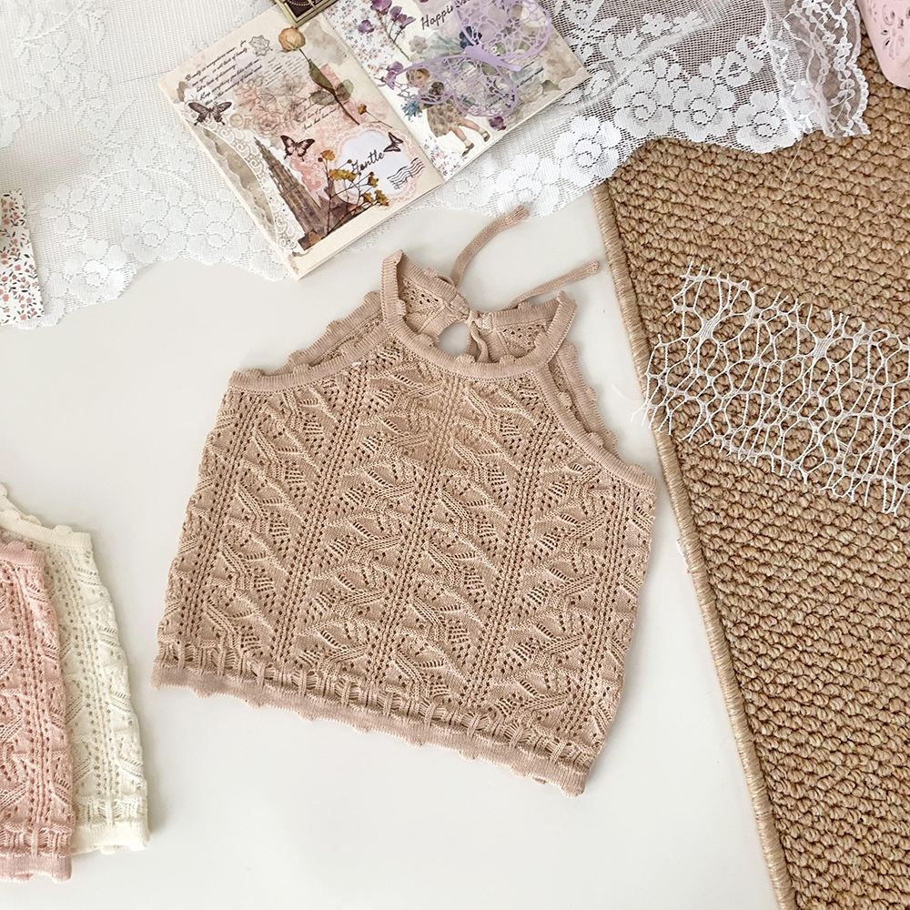 Cutemily 여름 아기 소녀의 크루 넥 니트 탑 여성용 보물 리퍼 스트랩 조끼 빈 백리스 짧은 조끼