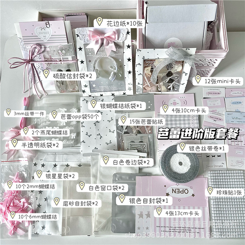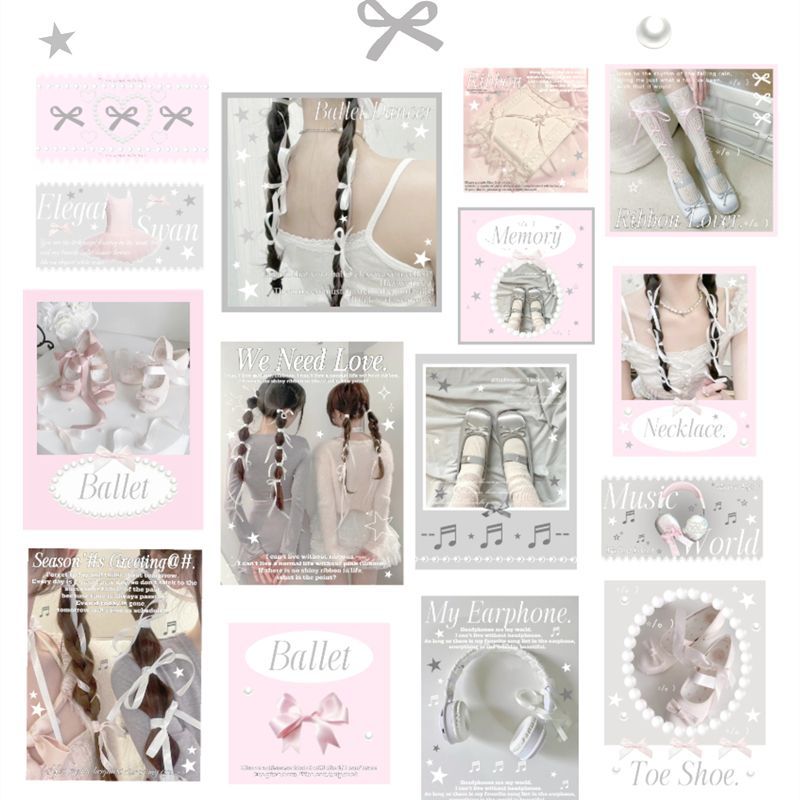 원래 한국어 인 스티커 가방 발레 리본 손 계정 소재 장식 파우더 그레이 제국 첩의 컬러 매칭 사진 소품