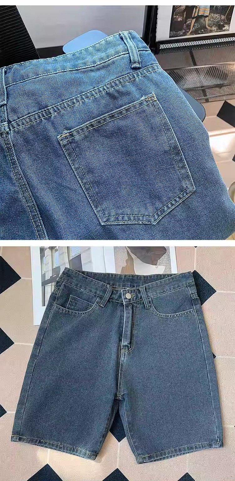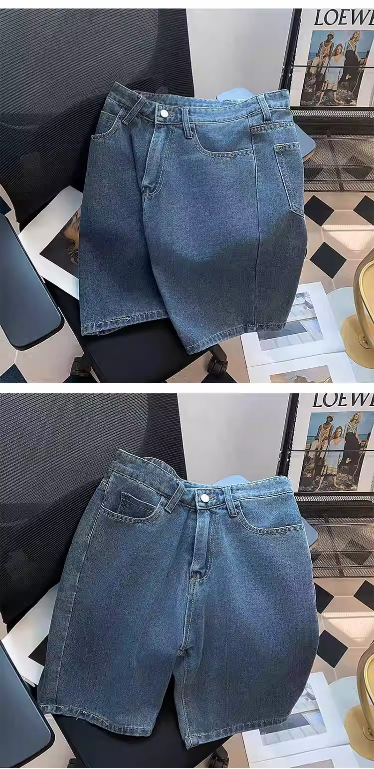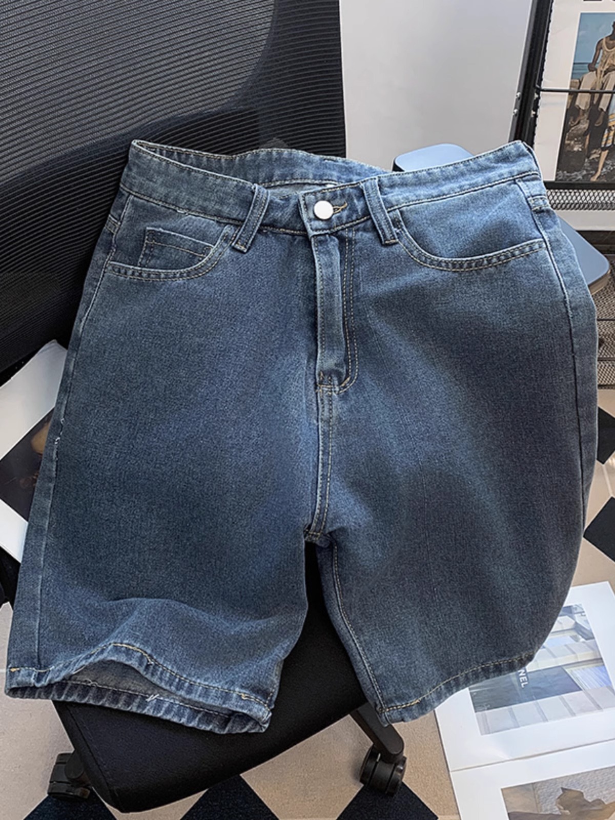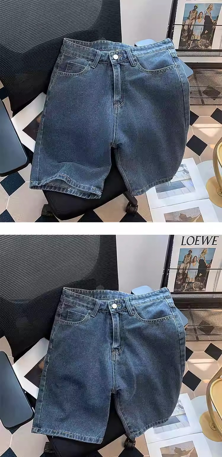 레트로 와이드 레그 데님 반바지 남자 여름 새로운 올 매치 슬림 핏 루즈 스트레이트 바지 캐주얼 미드 길이 바지스토어 가기