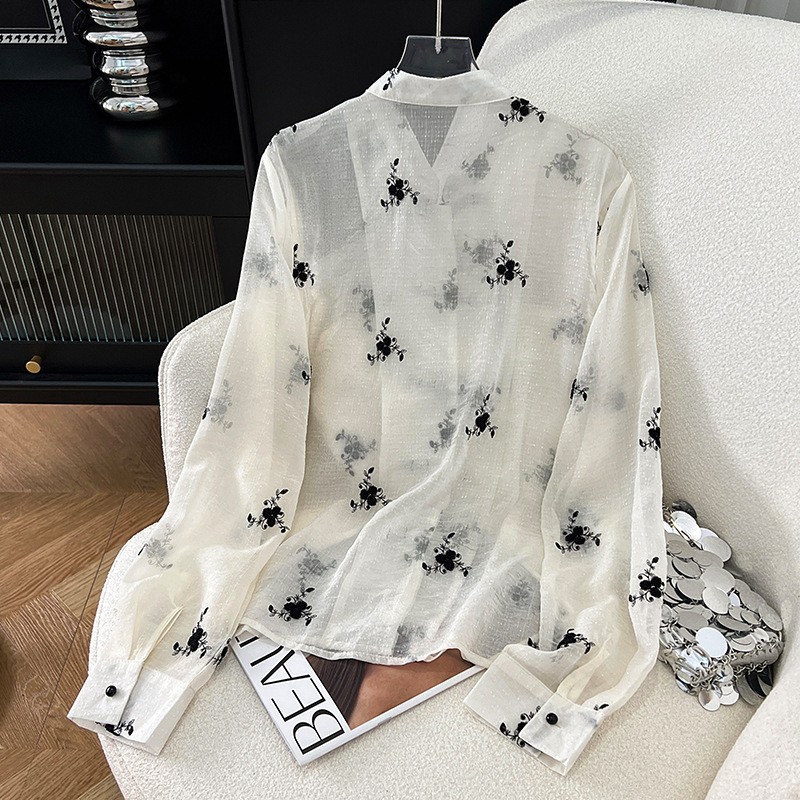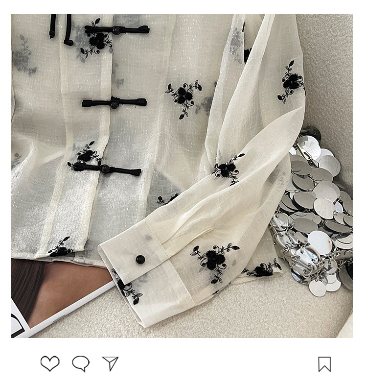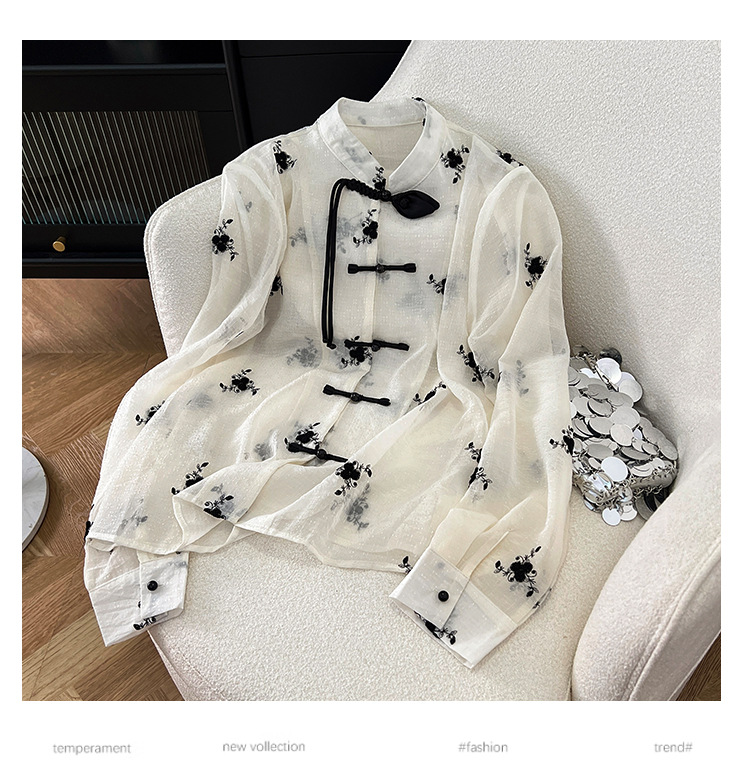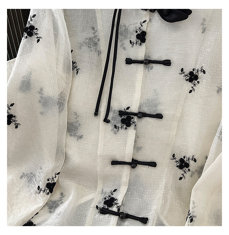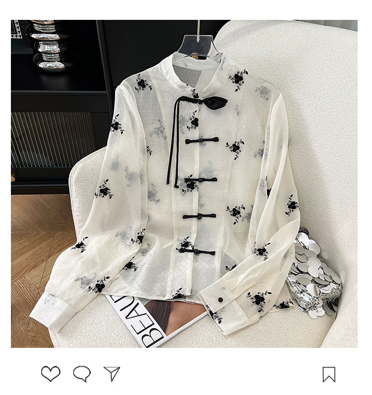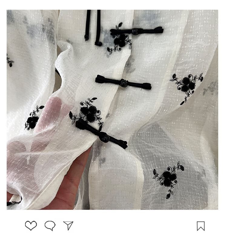 2024 여름 새로운 새로운 중국 스타일 국가 스타일 셔츠 복고풍 디자인 센스 틈새 버클 선 스크린 의류스토어 가기