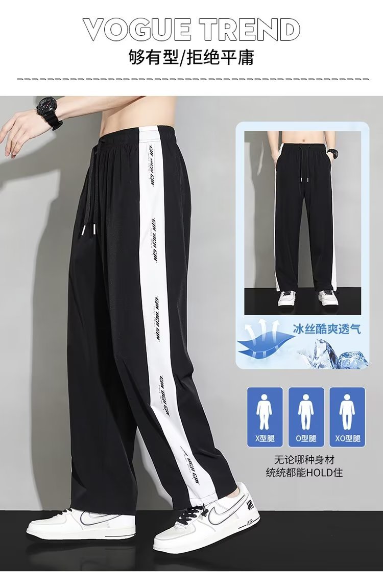 2024 새로운 도착 느슨한 캐주얼 바지 남자 한국 스타일 유행 올 매치 바지 여름 얇은 펜던트 넓은 다리 바지스토어 가기