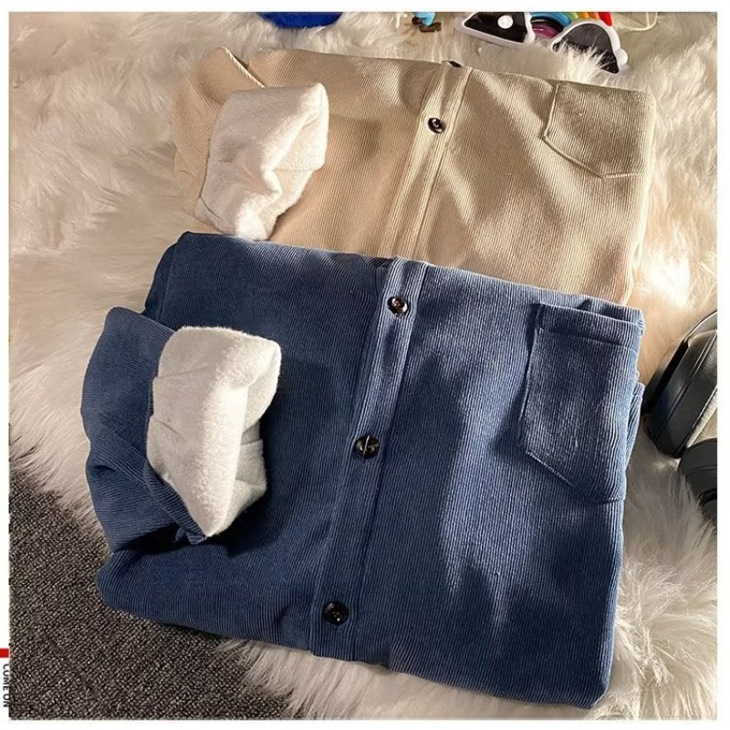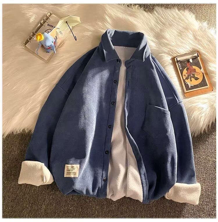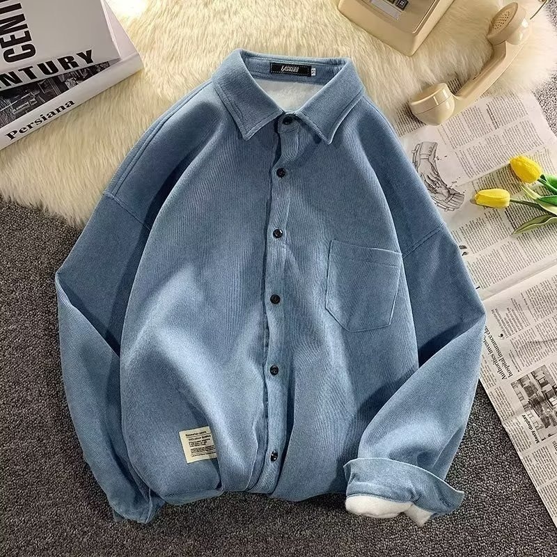 가을과 겨울 코듀로이 셔츠 남자 긴팔 한국 하이 엔드 캐주얼 재킷 잘 생긴 따뜻한 기모 셔츠